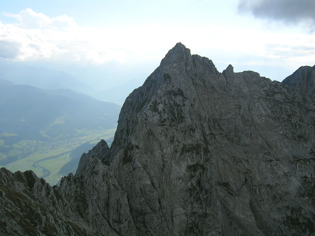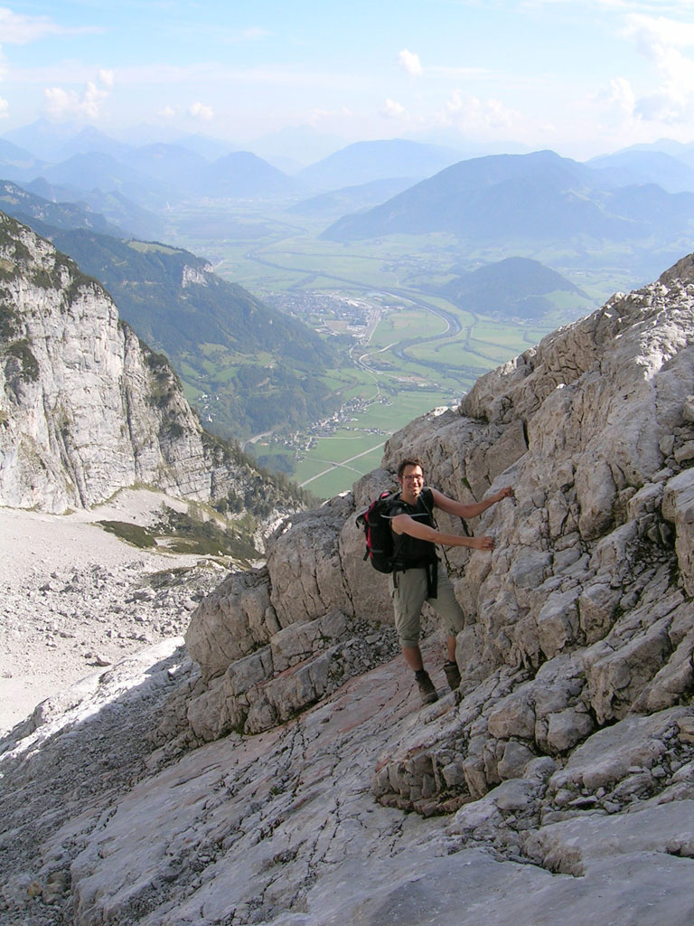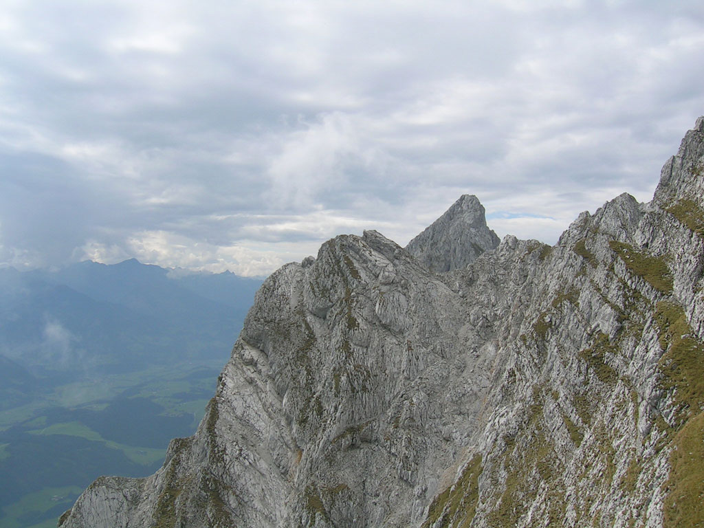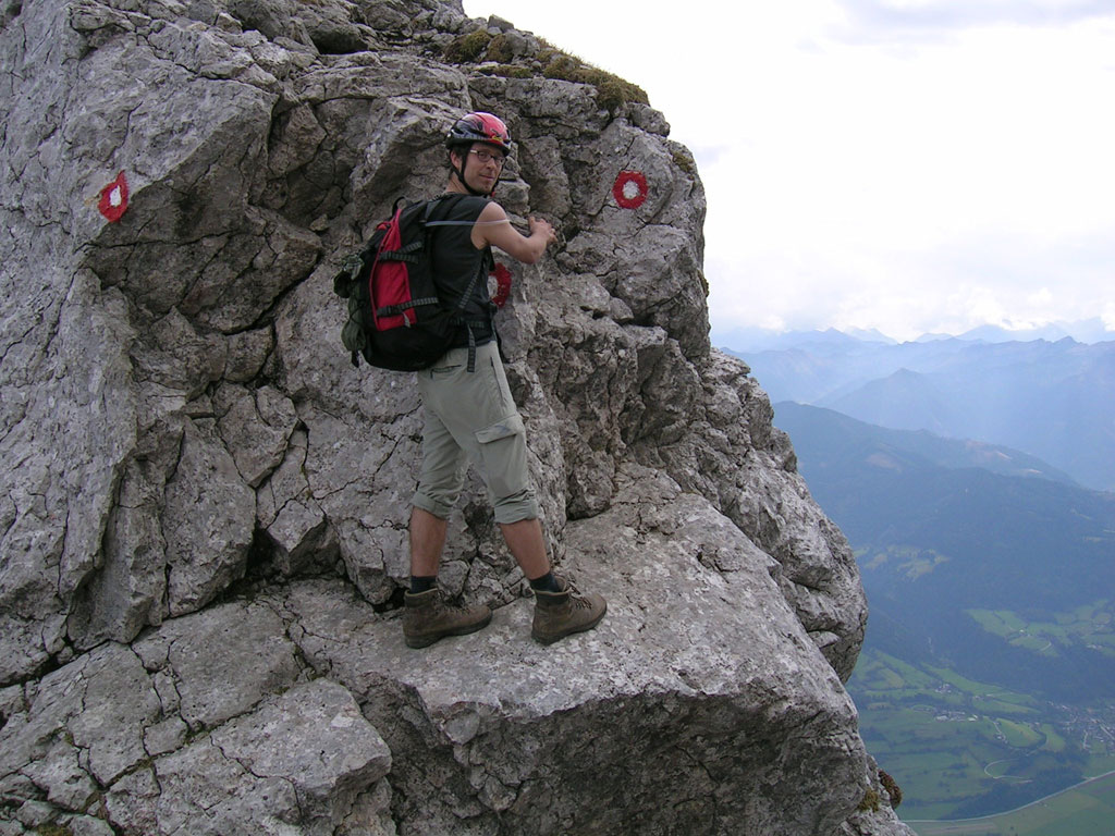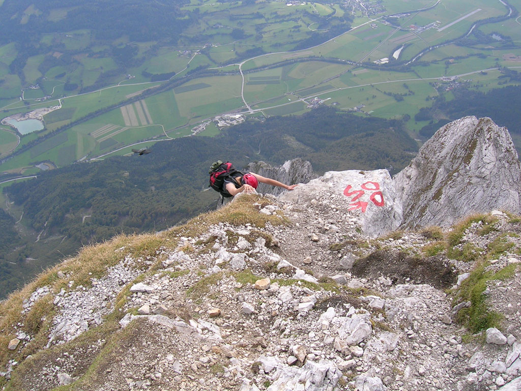 Bergtour mit Patch von Niederstuttern im Ennstal via Südostgrat auf den Grimming und Abstieg Richtung Norden nach Kulm. Dort angekommen, chauffierten uns glückerlicherweise zwei Bergsteiger mit dem Auto zum Ausgangspunkt unserer Tour auf der Südseite des Bergstocks zurück. Ansonsten wäre der Preis für diese spontane Überschreitung wohl ein mehrstündiger Fußmarsch gewesen!