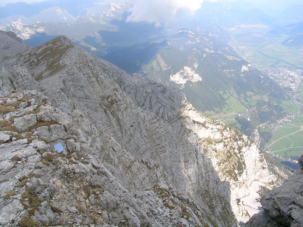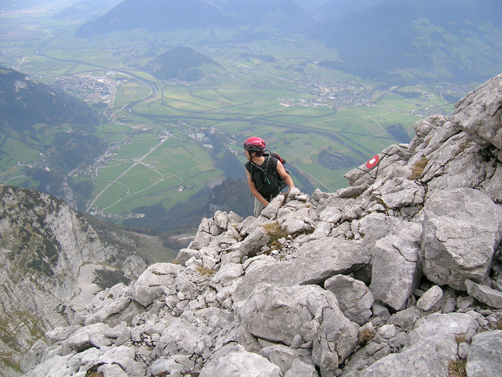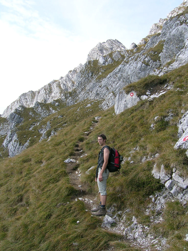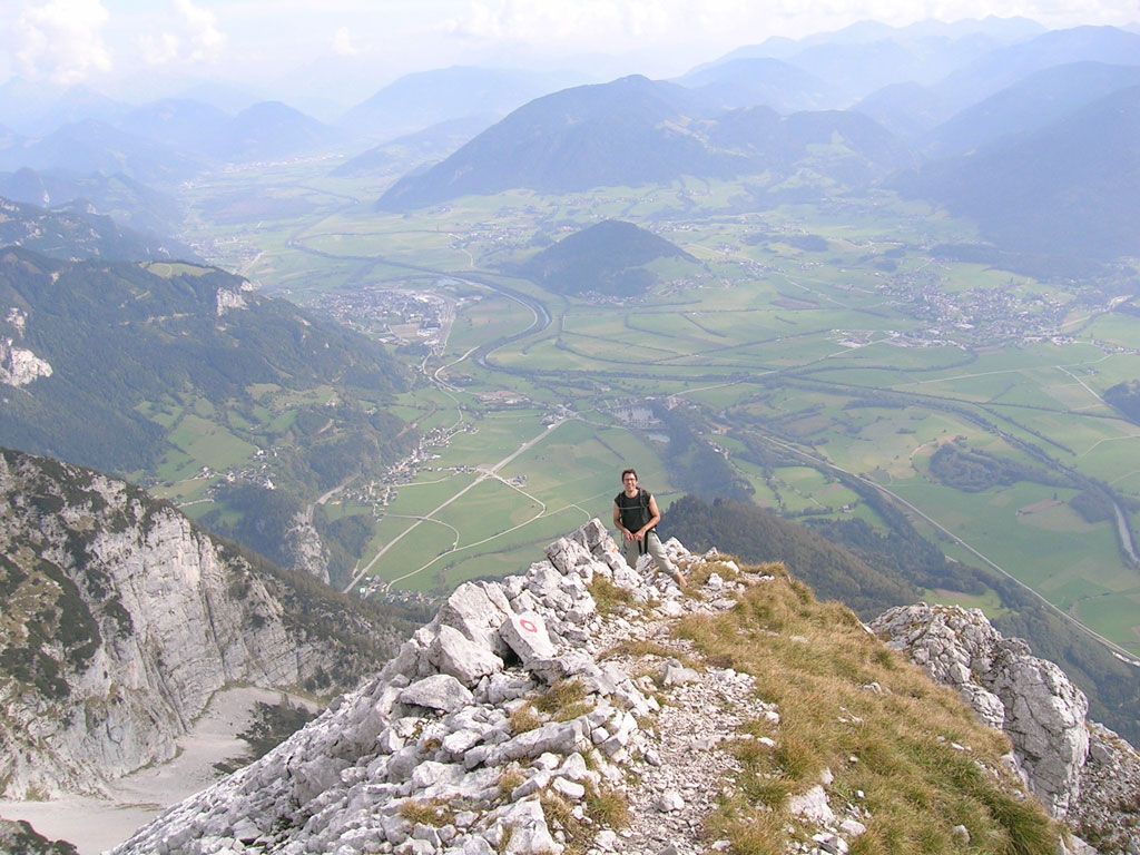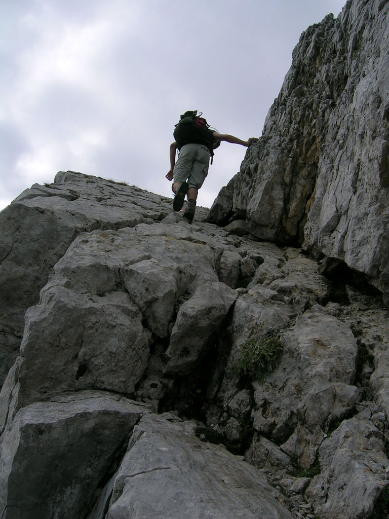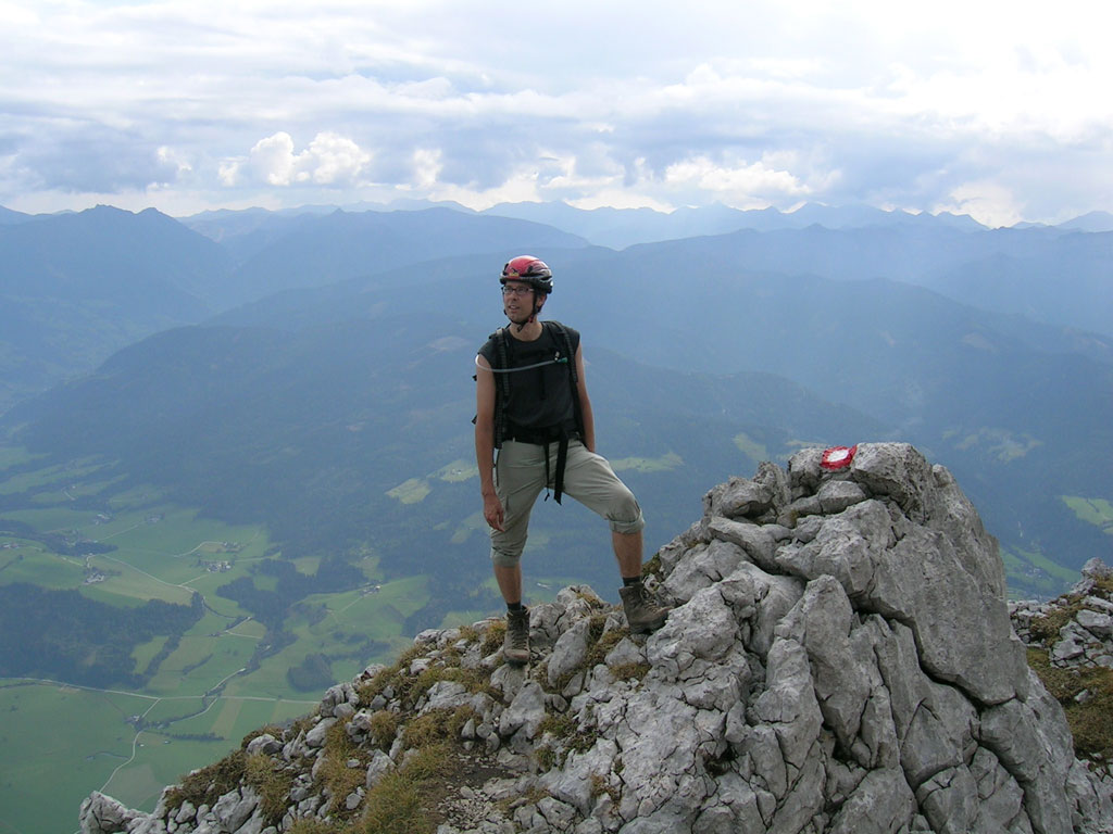 Bergtour mit Patch von Niederstuttern im Ennstal via Südostgrat auf den Grimming und Abstieg Richtung Norden nach Kulm. Dort angekommen, chauffierten uns glückerlicherweise zwei Bergsteiger mit dem Auto zum Ausgangspunkt unserer Tour auf der Südseite des Bergstocks zurück. Ansonsten wäre der Preis für diese spontane Überschreitung wohl ein mehrstündiger Fußmarsch gewesen!