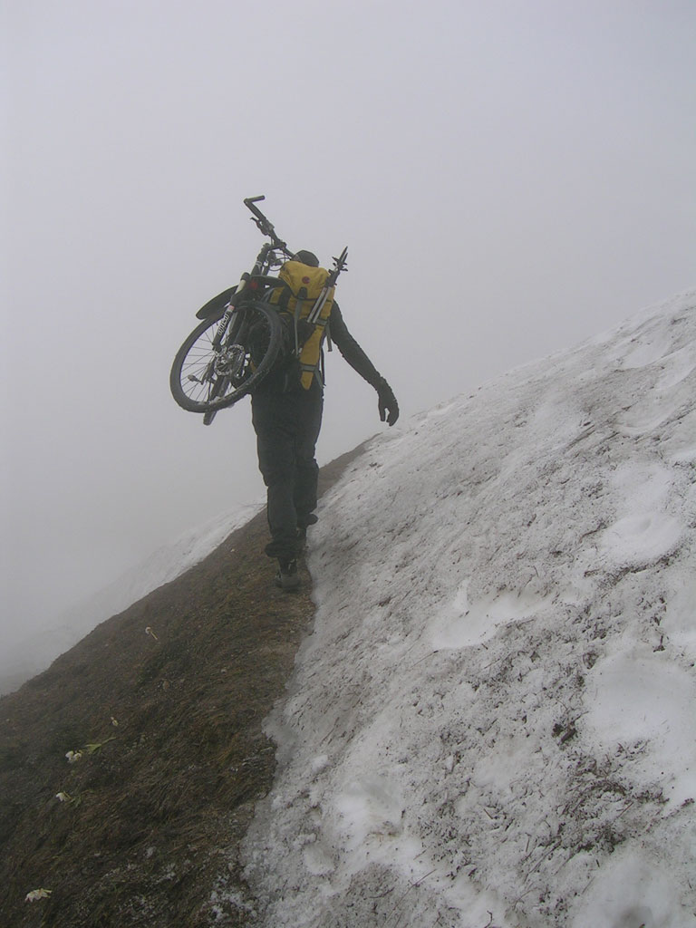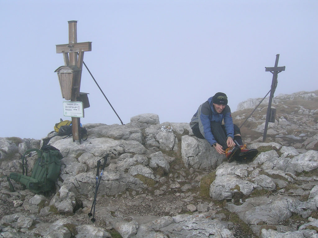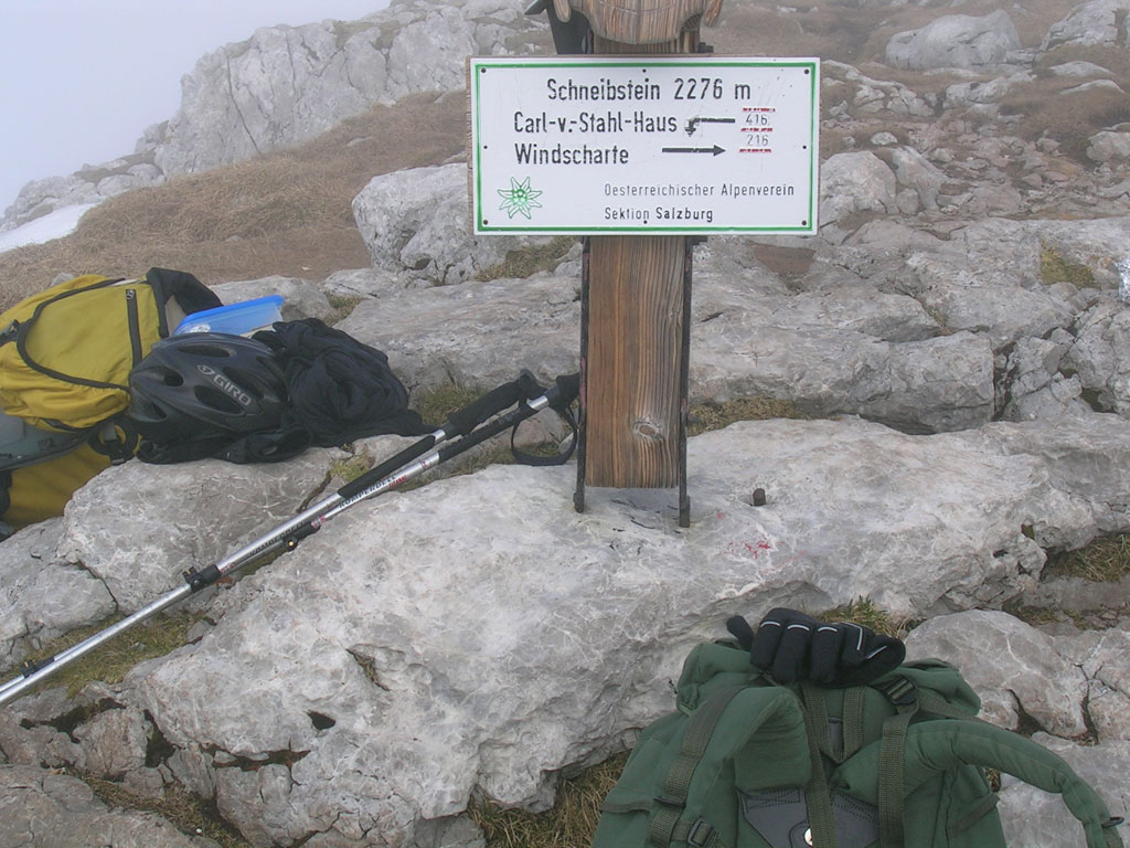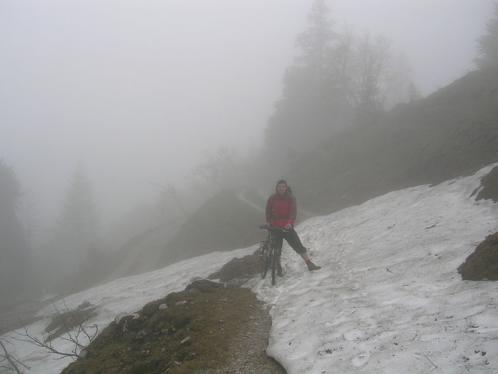 Kombinierte Mountainbike- und Bergtour mit Andi, von Salzburg über das Bluntautal auf das Stahlhaus, weiter auf den Schneibstein und zurück über Hinterbrand und Berchtesgaden. Nebel und Schnee sind eine sehr gefährliche Kombination in alpinen Gefilden. Es soll unter solchen Umständen schon mal vorkommen, daß man im Kreis läuft, ohne es zu merken. Durch spätere Erfahrungen in vergleichbaren Situationen könnte man das Ganze auch als „Bindelwegsyndrom“ bezeichnen. Hierbei hilft nur der richtige Umgang mit Karte und Kompass…