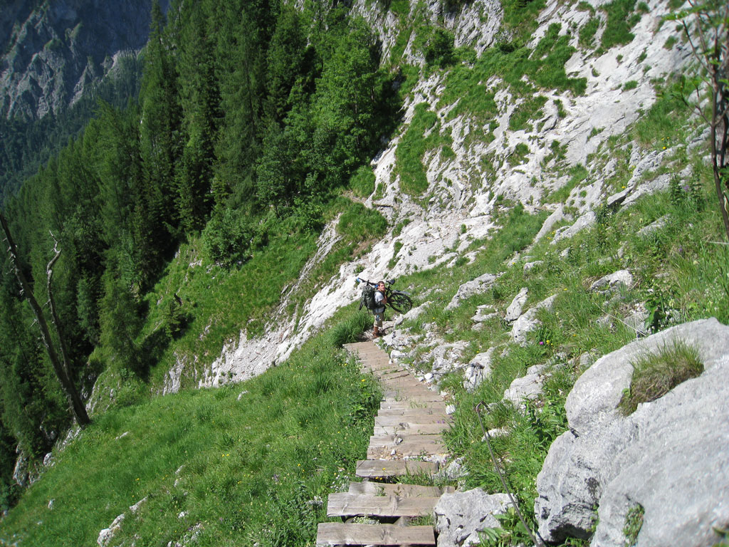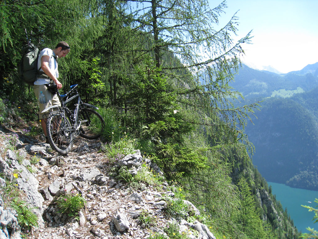 Mountainbiketour mit Andi, von Salzburg nach Berchtesgaden auf die Kührointhütte, weiter über den Rinnkendlsteig nach St. Bartholomä und bis zur Unterlahner Alm, dann wieder alles retour. Nachdem wir unterwegs in Erfahrung bringen konnten, dass im gesamten Wimbachgries (so wie in weiten Teilen des Nationalparks Berchtesgaden) Fahrverbot für Bikes besteht, beschlossen wir nach einigem Zögern, einer möglichen Konfrontation mit hiesigen Parkwächtern aus dem Weg zu gehen. Dieser Versuch wurde somit kurzerhand abgebrochen, und wir traten unmutig den Rückweg an. Eine erneute Unternehmung zur Umrundung des Watzmann setzt somit eine geeignete Taktik voraus… Fortsetzung folgt!