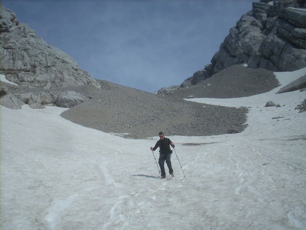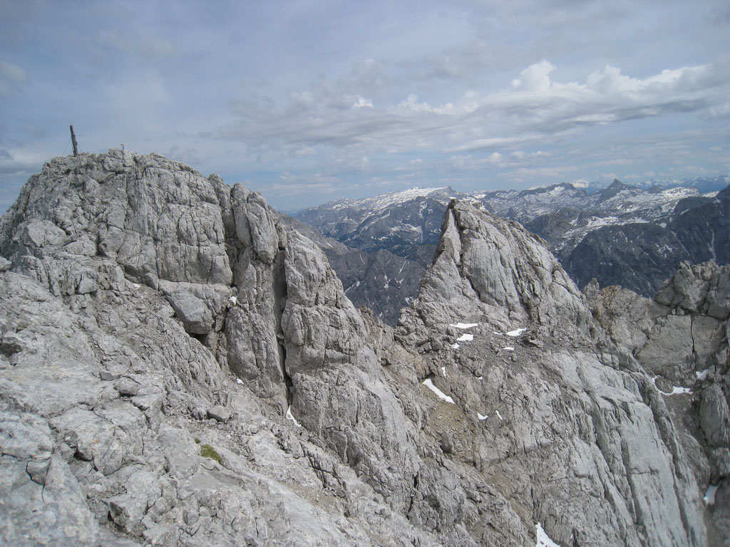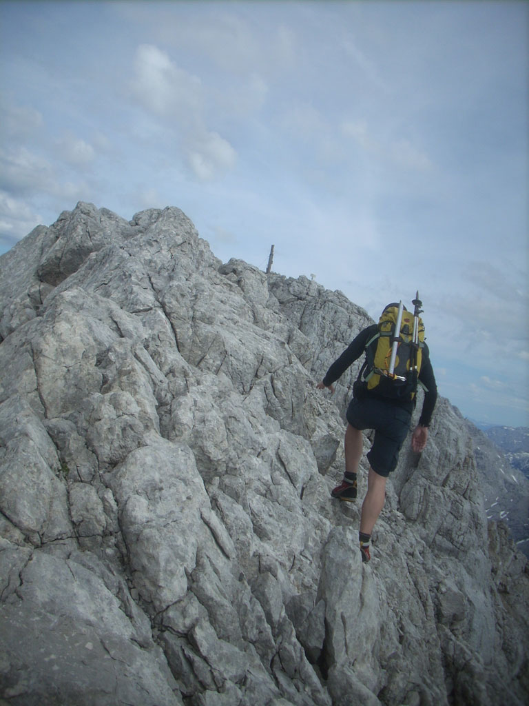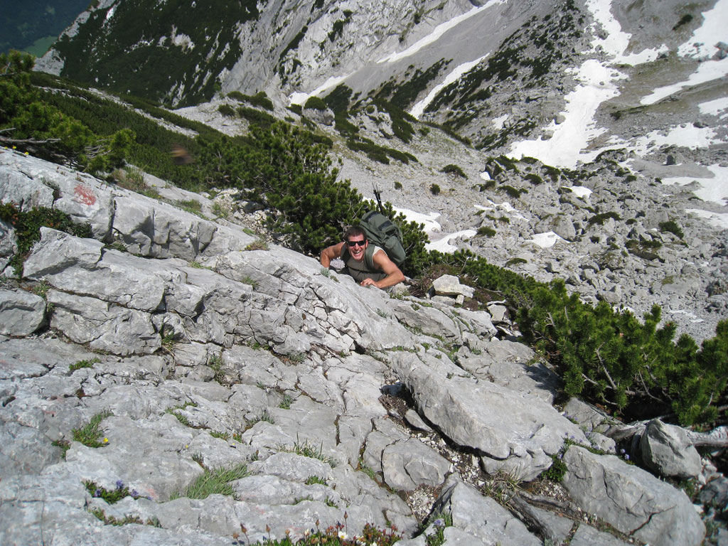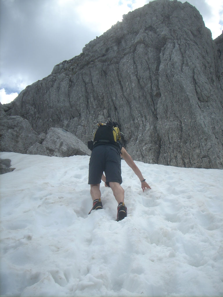 Kombinierte Mountainbike- und Bergtour mit Andi, von Salzburg nach Hintersee auf den Hochkalter via Schönen Fleck, und Abstieg durch das Ofental. Trotz sommerlicher Bedingungen hatten wir uns dazu entschlossen zumindest den Pickel mitzunhemen, um für unangenehme Altschnee- und Firnfelder gut ausgerüstet zu sein. Schlussendlich kamen unsere Pickel zwar nicht zum Einsatz, jedoch fanden wir hin und wieder doch noch ein jede Menge Schnee vor. Aber alles kein Problem, und so genossen wir die herrliche, und an diesem Tag sehr einsame Umgebung.