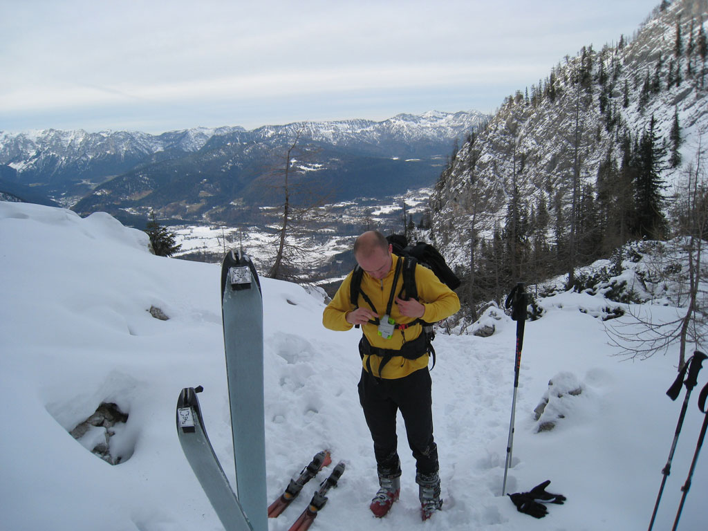 Schitour mir Klausi vom Parkplatz Hinterbrand über den Alpeltalsteig und die Umgäng in Richtung Hoher Göll. Leider kamen wir durch die eisigen Bedingungen nicht so schnell voran als geplant und entschieden uns der herannahenden Dunkelheit bzw. fehlender Stirnlampen (ein Fehler der nicht zu oft passieren sollte…) wegen ca. 200 Höhenmeter vom Gipfel entfernt zur Umkehr. Die anschließende Abfahrt entbehrte aufgrund von Kälte und zahlreicher eisiger Hänge jeglicher Eleganz, machte aber trotzdem sehr viel Spaß.