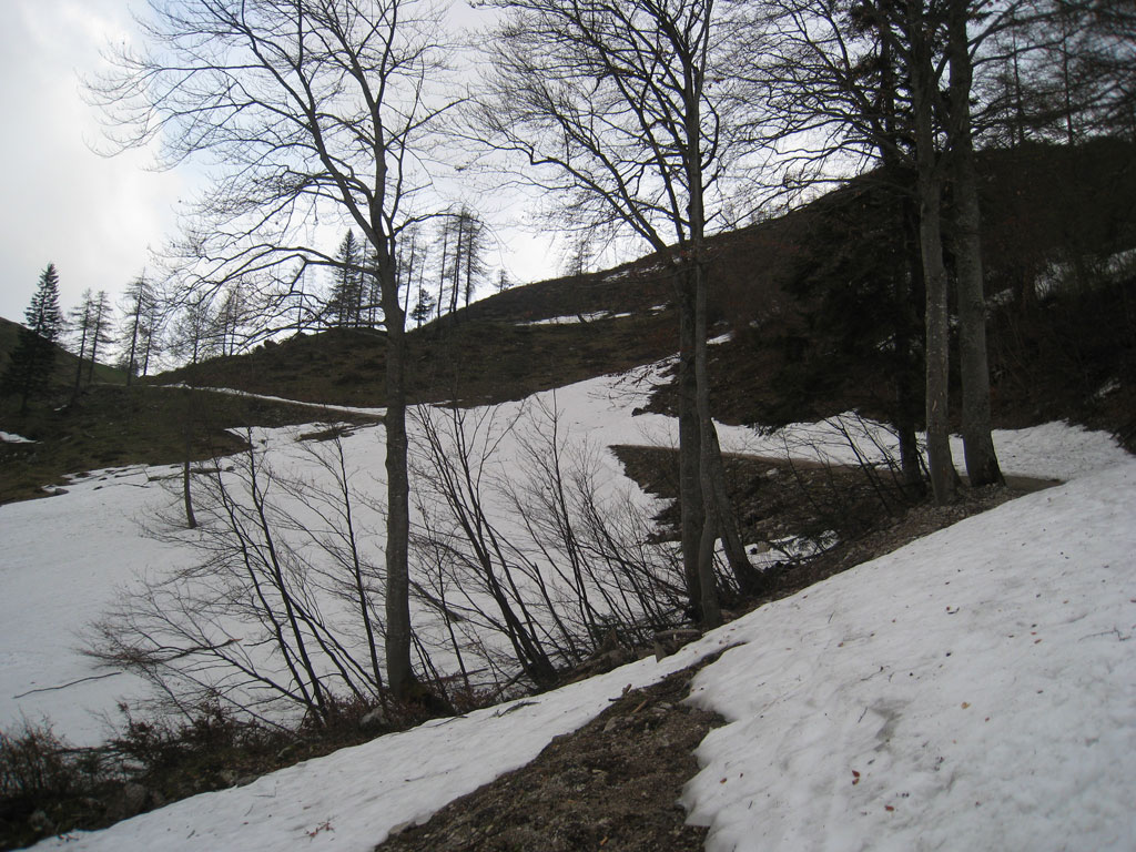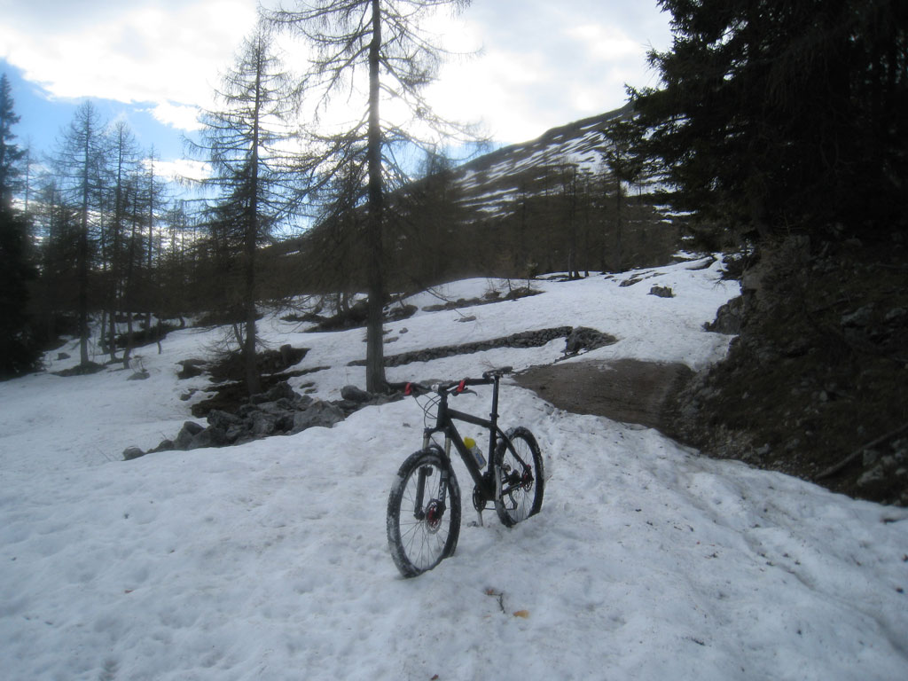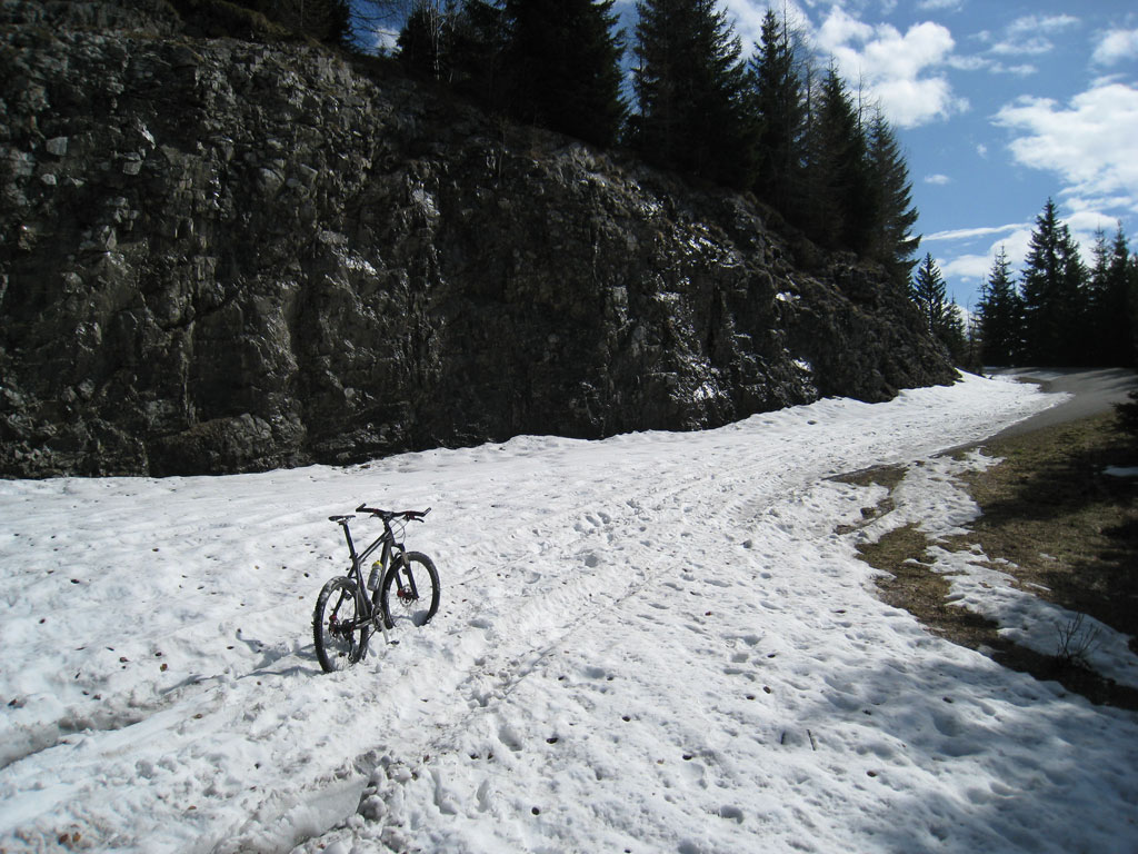Mountainbiketour (schon wieder alleine…), von Salzburg nach St. Koloman und auf den Trattberg zur Moosangerlalm, weiter Richtung Genneralm und über Hintersee zurück nach Salzburg. Durch den noch üppigen Schnee auf den Wegen und Hängen war der eigentliche Weg von der Moosangerlalm zur Genneralm nicht auffindbar, was eine ungewöhnliche Odysee durch einen steilen Waldhang bis zu den Abbrüchen des Schneidhofgraben zur Folge hatte. Das Überqueren des Wildbachs und der anschließende Aufstieg an den abschüssigen Felshängen wären selbst ohne Bike eine interessante Aufgaben gewesen…