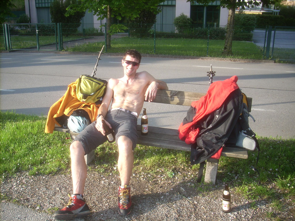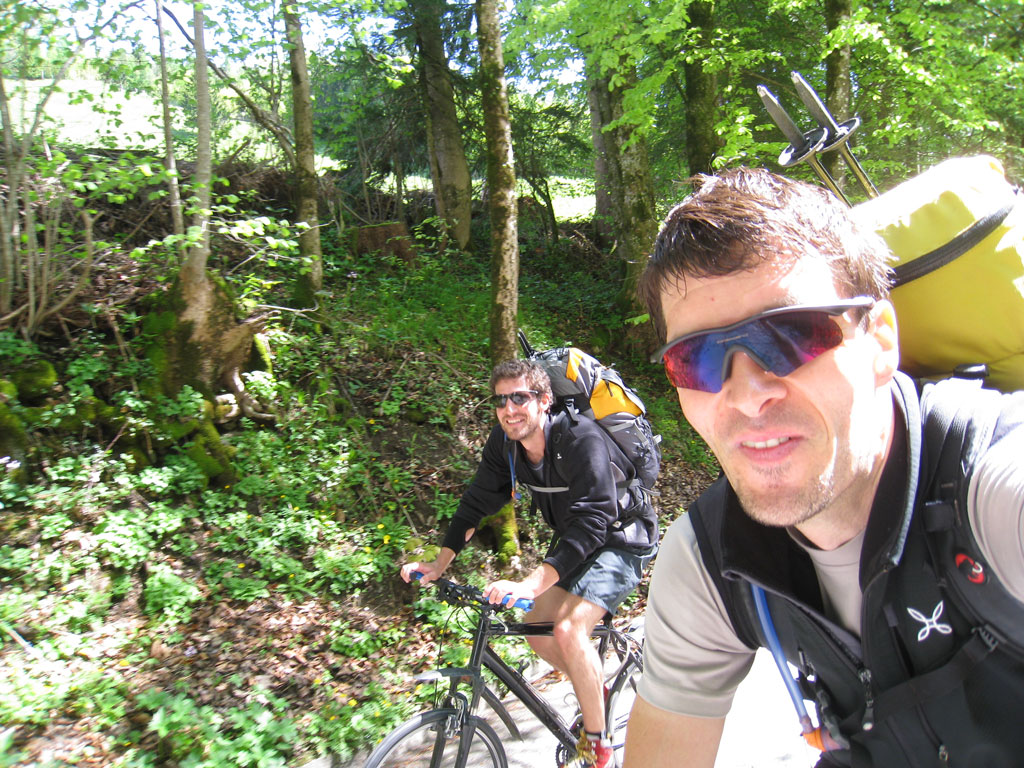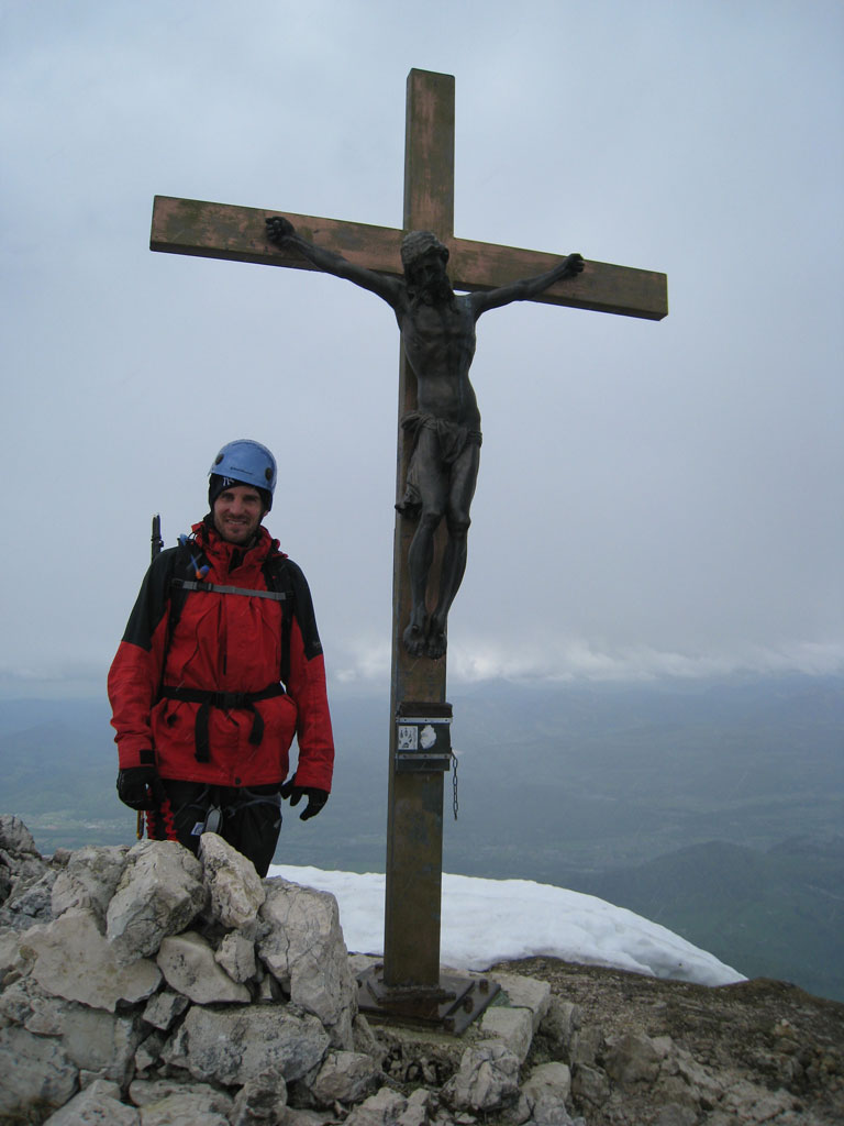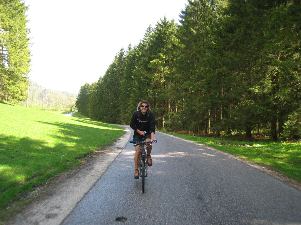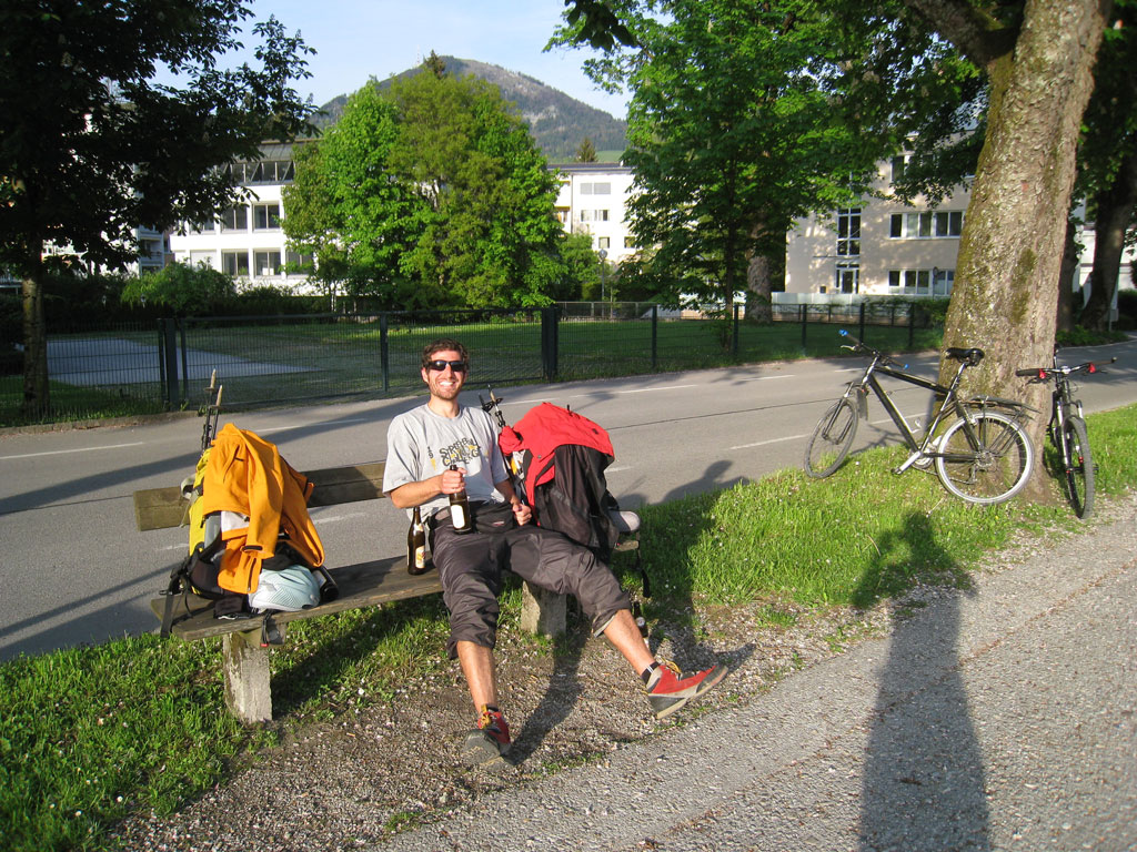 Kombinierte Mountainbike- und Bergtour mit Andi, von Salzburg nach Marktschellenberg und zum Roßboden, weiter über Scheibenkaser und den Hochthron-Klettersteig auf den Berchtesgadener Hochthron, und retour über das Störhaus. Unser zweiter Anlauf auf den Hochthron Klettersteig (nach unserem ersten Versuch im Jahr 2008) gestaltete sich als wahrlich beeindruckend, zumal wir den gesamten Klettersteig, ja scheinbar den ganzen Berg für uns alleine hatten. Diese unerwartete Einsamkeit lässt sich vermutlich auf den Umstand zurückführen, dass an diesem 9. Mai Muttertag war. Außerdem haben die noch etwas frischen Temperaturen und Restschneefelder vermutlich auch das Ihrige dazu getan. Die Kletterei erfüllte unsere Erwartungen voll und ganz, nicht zuletzt weil im oberen Wandteil plötzlich einsetzender Schneefall (!) vermeintlich einfache Passagen innerhalb weniger Minuten in äußerst rutschige und glatte Kletterstellen verwandelte. Nachdem wir schließlich wieder in Salzburg angekommen waren, bildeten einige Kebab und Bier einen angemessenen Abschluss dieser Tour.