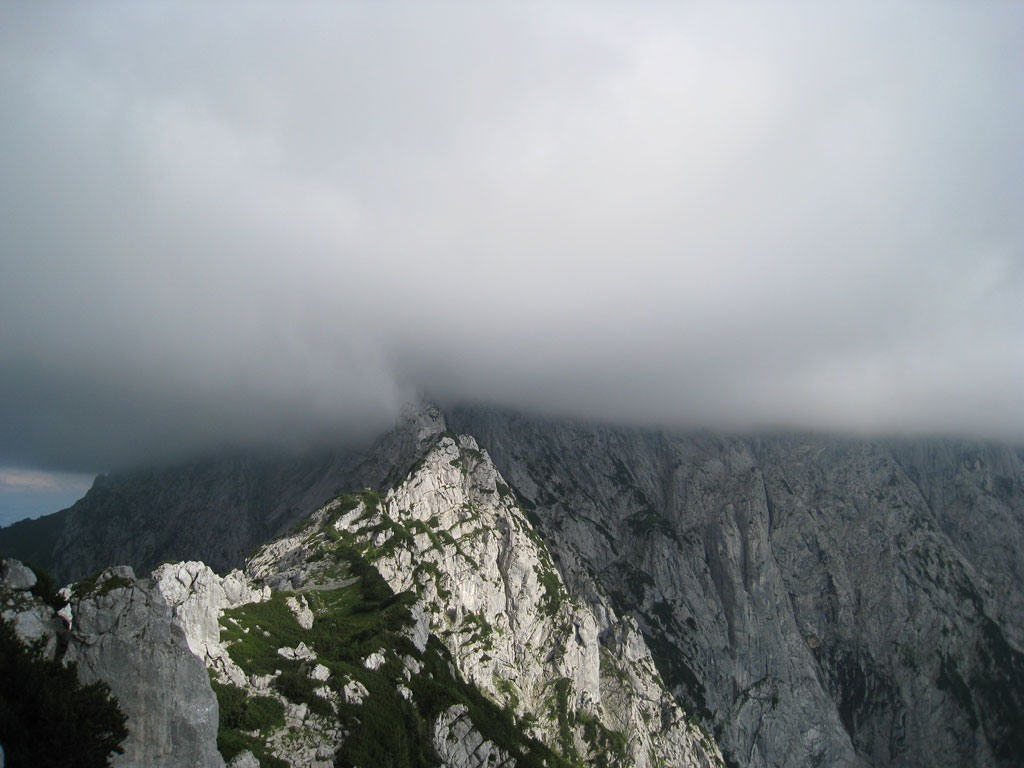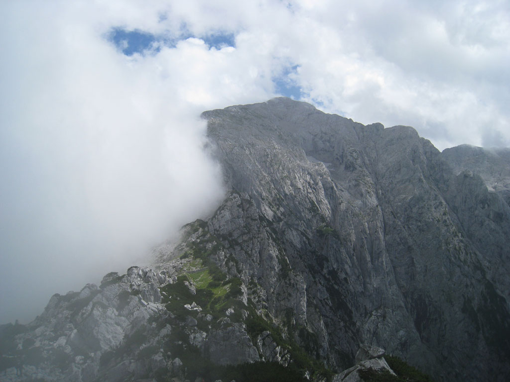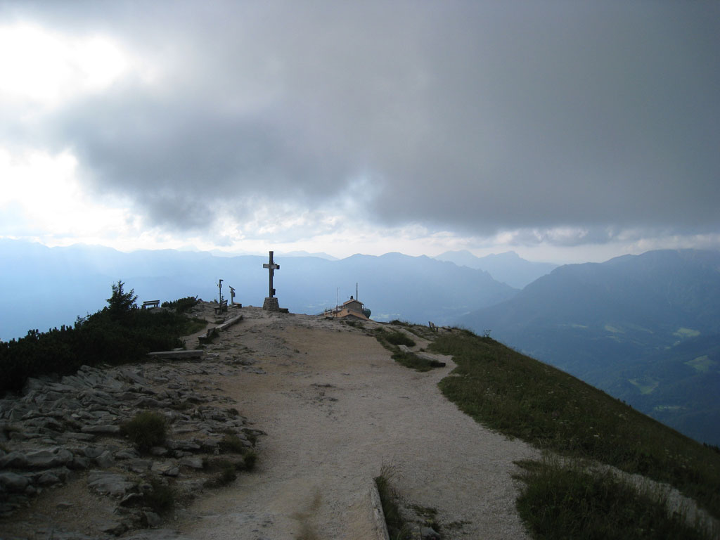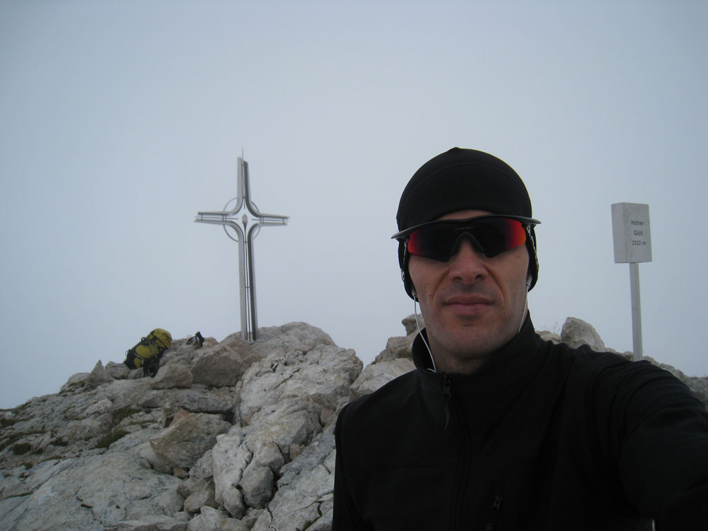 Kombinierte Mountainbike- und Bergtour (schon wieder ohne Andi auf dem Weg zum Hohen Göll… 🙂 ), von Salzburg über die Rossfeldstrasse auf das Kehlsteinhaus, weiter zum Hohen Göll via Mannlgrat und wieder retour. Wie sich später herausstellten sollte, war der Hohe Göll an diesem durchaus sonnigen Tag der einzige wolkenverhangene Gipfel weit und breit. Obwohl ich im Gegensatz zur gleichen Tour vom letzten Jahr dieses mal ausreichend Wasser dabei hatte, stellten sich am Mannlgrat sehr unangenehme Krämpfe in beiden Oberschenkeln ein, und ich war kurz davor umzukehren. Doch einige Minuten Stretching, ausgiebig Wasser trinken und ein Powerbar wirkten wahre Wunder, wodurch ich die restlichen Höhenmeter wieder voll genießen konnte.