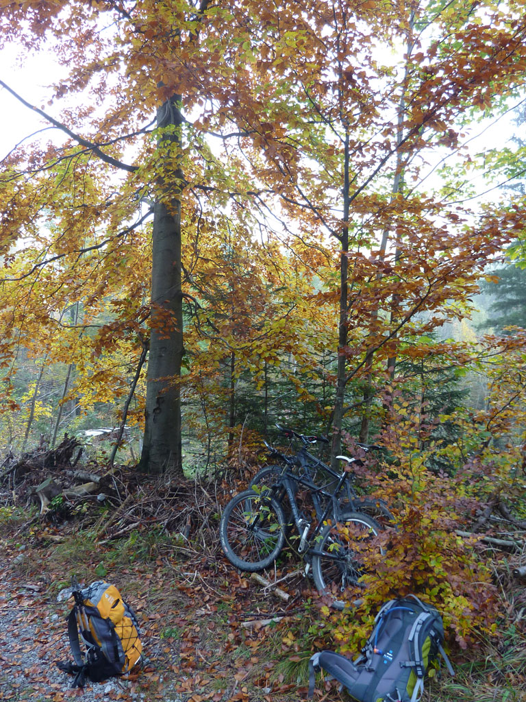 Kombinierte Mountainbike- und Bergtour mit Andi und Talitha, von Salzburg nach Piding und Urwies, über den Pidinger Klettersteig auf den Hochstaufen und retour. Aufgrund der Tatsache, dass wir den Klettersteig für uns alleine hatten und das Wetter einfach traumhaft war, genoßen wir alle diesen herbstlichen Bergausflug, der mit einer spannenden Abfahrt in Dunkelheit über die Forstraße bis zum Parkplatz einen krönenden Abschluss fand.