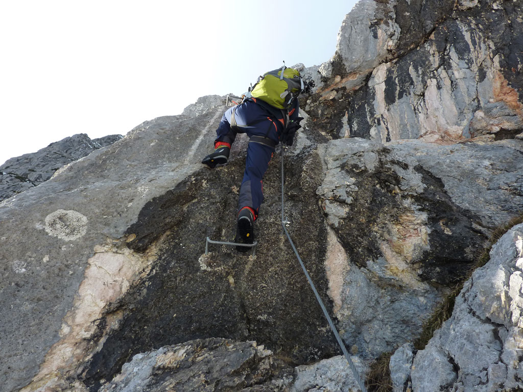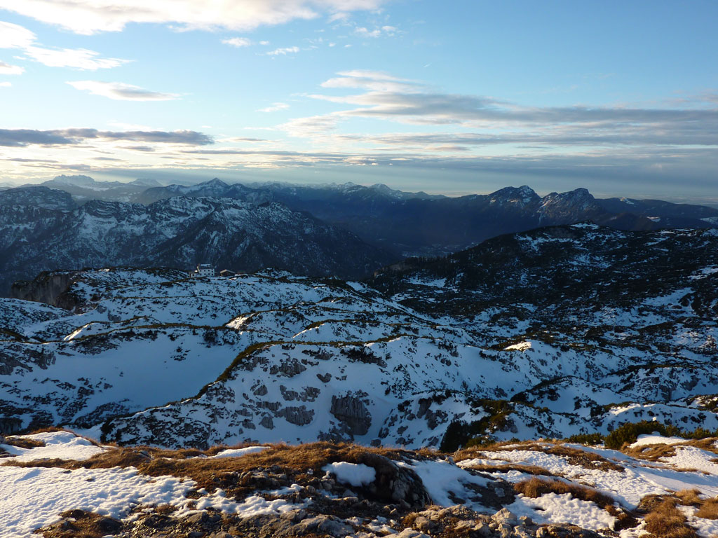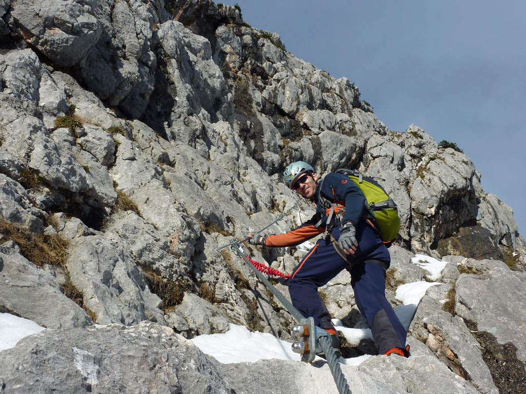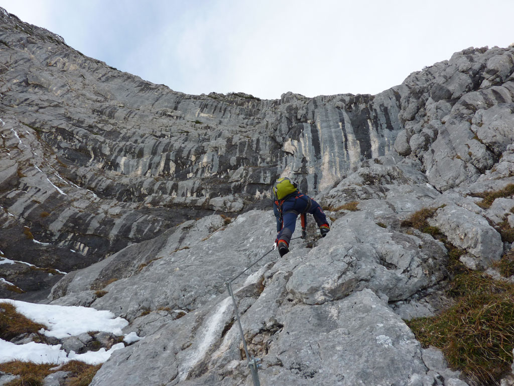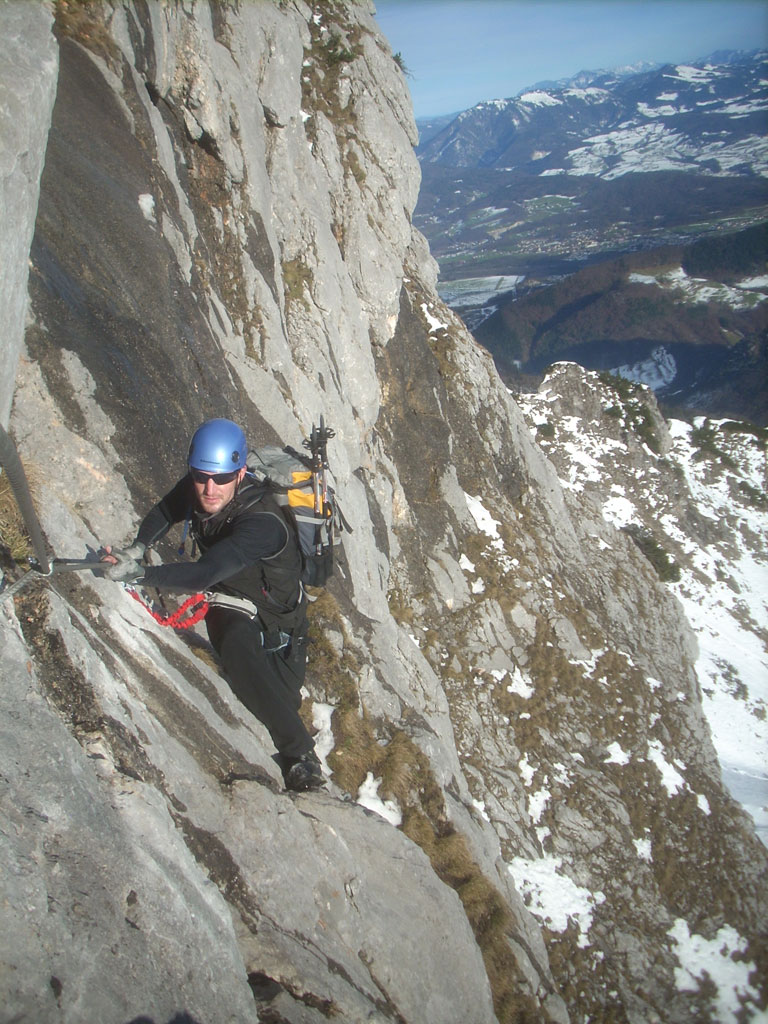 Winterliche Berg- und Klettersteigtour mit Andi vom Roßboden über den Scheibenkaser und den Hochthron-Klettersteig auf den Berchtesgadener Hochthron, retour über das Störhaus. Trotz einer dichten Schneedecke beim Zustieg, war die Wand weitestgehend schneefrei und verhältnismässig trocken. Am Gipfel wurden wir mit einem herrlichen Sonnenuntergang belohnt und traten in der Dämmerung den Rückweg an.