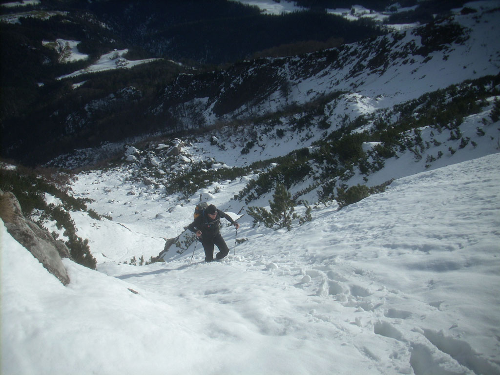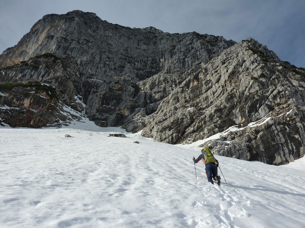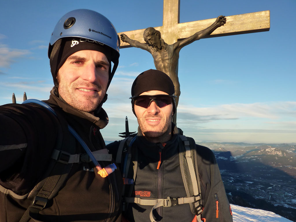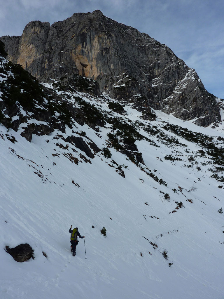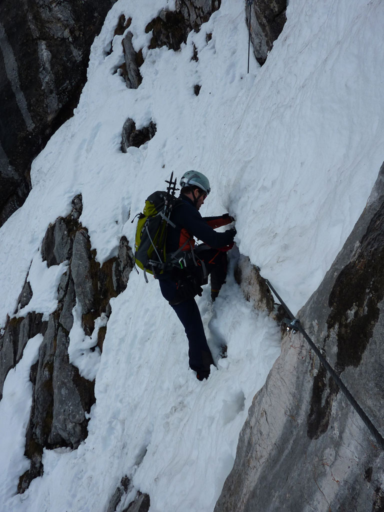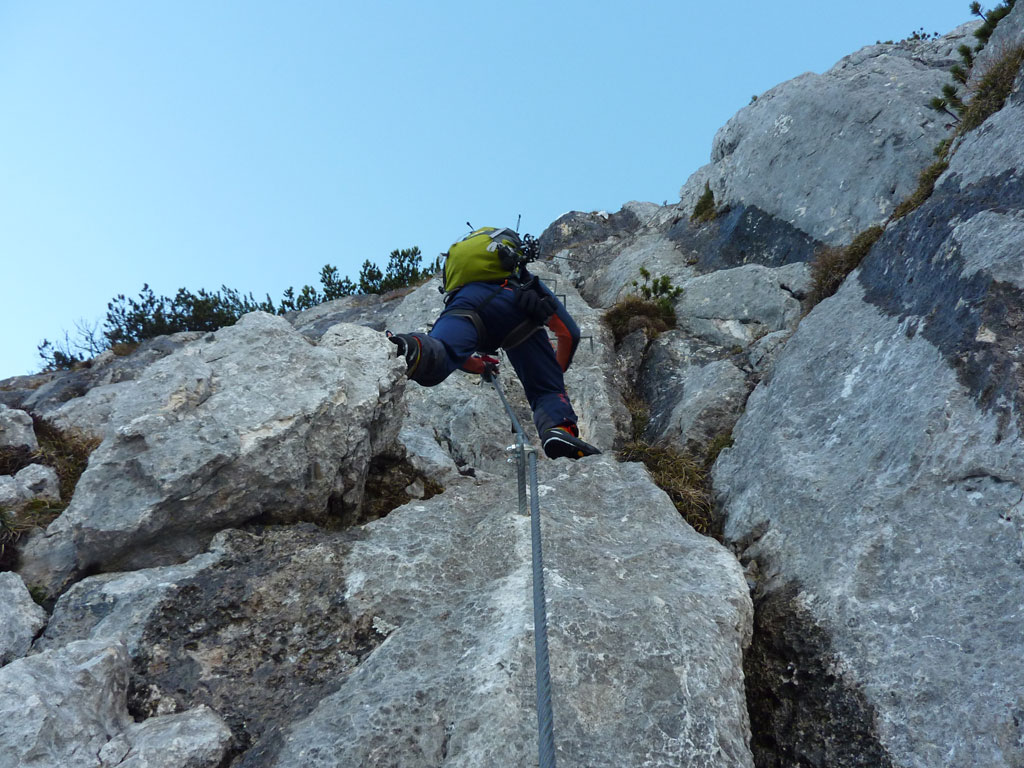 Winterliche Berg- und Klettersteigtour mit Andi vom Roßboden über den Scheibenkaser und den Hochthron-Klettersteig auf den Berchtesgadener Hochthron, retour über das Störhaus. Trotz einer dichten Schneedecke beim Zustieg, war die Wand weitestgehend schneefrei und verhältnismässig trocken. Am Gipfel wurden wir mit einem herrlichen Sonnenuntergang belohnt und traten in der Dämmerung den Rückweg an.