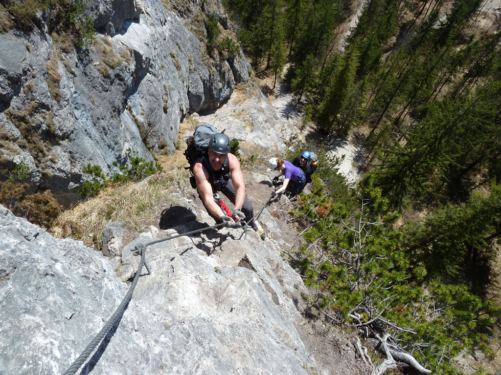 Klettersteigtour mit Andi, Chris und der Chefin 🙂 über den Grünstein Klettersteig (Variante Isidor, linker Einsteig) auf den Gipfel des Grünstein und retour über die Grünsteinhütte und den Klingerweg.