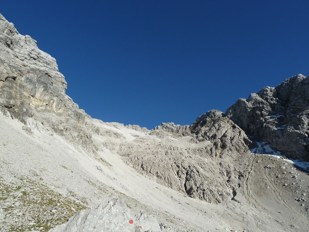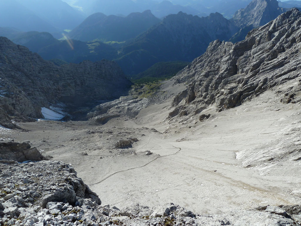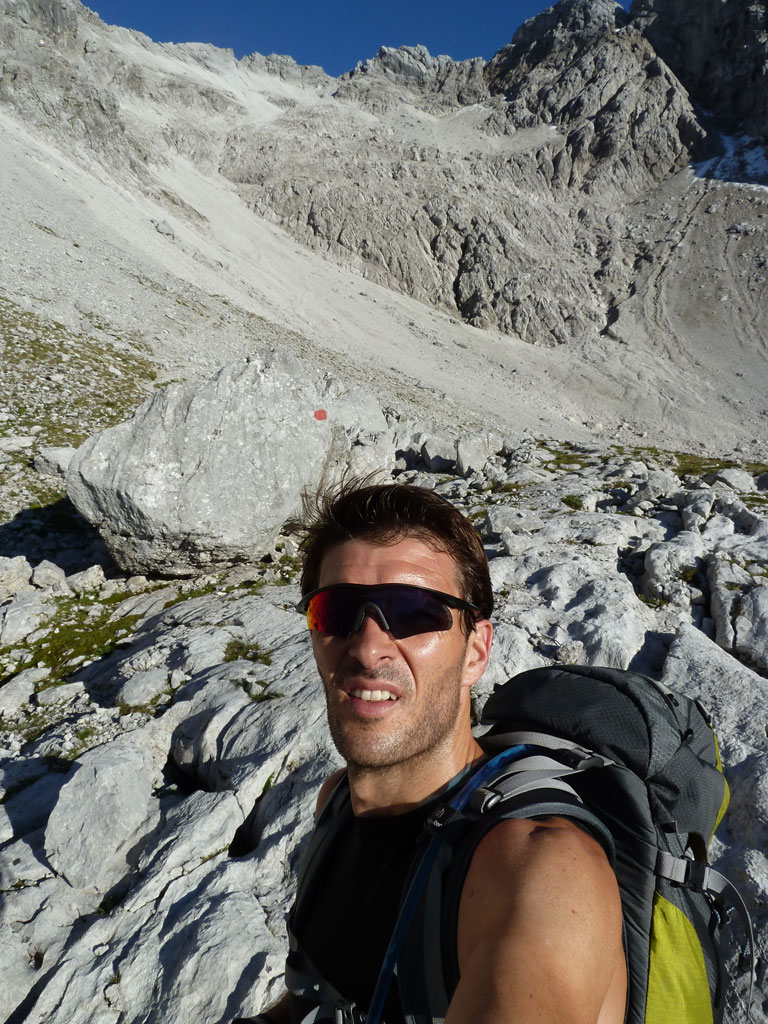 Nachdem mein erster Versuch die Hocheisspitze zu besteigen schlichtweg daran gescheitert war, dass ich die richtige Wegzweigung vor der Mittereisalm verfehlte, wollte ich es nun besser machen und entschloss mich an diesem hochsommerlichen Tag, wenngleich auch wie üblich erst zur Mittagszeit, einen neuen Anlauf zu unternehmen. Obwohl ich zwar anfänglich dem richtigen Steig folgen konnte, schaffte ich es jedoch einige Höhenmeter weiter wieder die richtige Abzweigung zu übersehen. Etwas demotiviert durch den unnötigen Umweg fand ich letztlich den entsprechenden Weg in Richtung Hintereiskar. Nach einer kleinen Stärkung nahm ich das lange Geröllfeld bis zum Gipfel in Angriff und musste feststellen, dass mein Schritttempo zunehmends langsamer wurde und ich einige Verschnaufpausen benötigte. Der Gipfel schien an diesem Tag für mich irgendwie nicht erreichbar, doch mit kleinen Schritten und Beharrlichkeit erreichte ich dann den Gipfelgrat und in wenigen Minuten darauf den höchsten Punkt der Hocheisspitze. Überglücklich und zufrieden, dass ich es trotz Irrwege und Müdigkeit endlich geschafft hatte an diesem Platz zu stehen, war der Abstieg überaus leichtfüssig und die Rückfahrt nach Salzburg sehr entspannt.