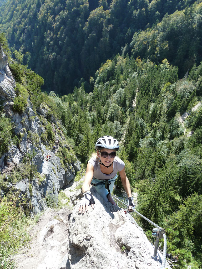 Klettersteigtour mit Verena über den Grünstein Klettersteig (Variante Isidor, linker Einsteig) auf den Gipfel des Grünstein und retour über die Grünsteinhütte und den Klingerweg.