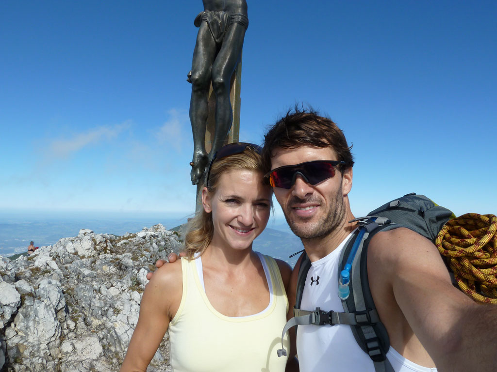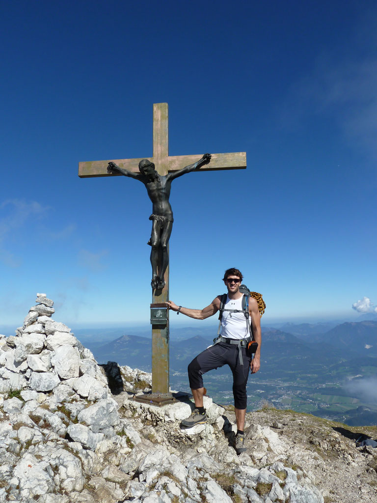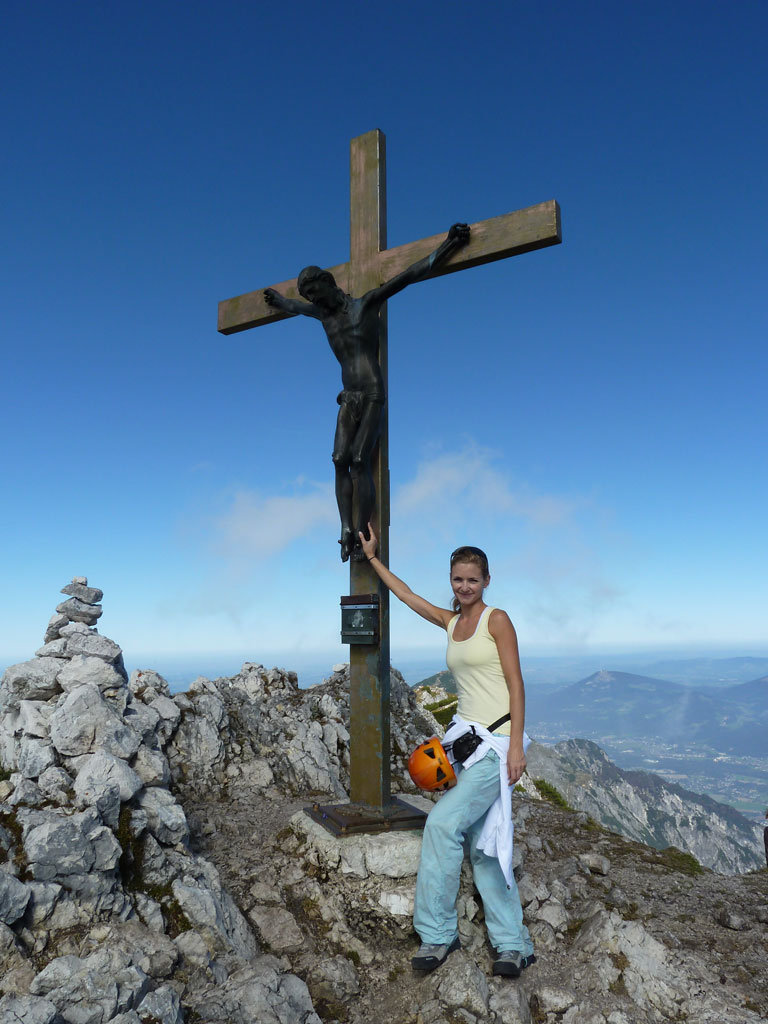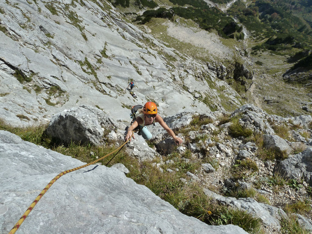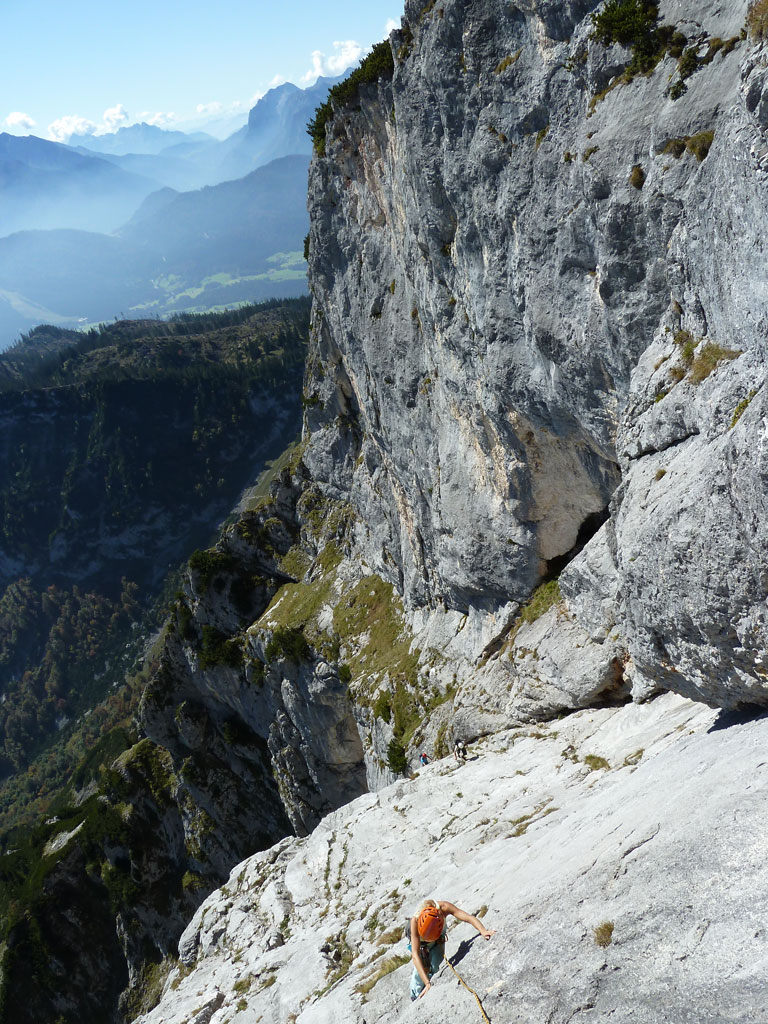 Klettertour an einem herrlichen Herbsttag mit Verena über die Route Anfängerfreuden (V-) auf den Berchtesgadener Hochthron. Nachdem wir daheim angekommen waren, meinte Verena, sie hätte sich wohl niemals auf diese Tour eingelassen, wenn sie gewusst hätte, was sie erwartet :-). Obwohl es unsere zweite gemeinsame Klettertour war, gab es keinerlei Probleme und Verena konnte es trotz anfänglichem Unbehagen voll genießen. Beim Gipfelkreuz angekommen, waren wir beide sehr stolz aufeinander und genossen die warme Herbstsonne. Nicht zuletzt die ausgiebige und wohlverdiente Mahlzeit beim Stöhrhaus hat uns für die, wenn auch vergnüglichen Mühen entschädigt.