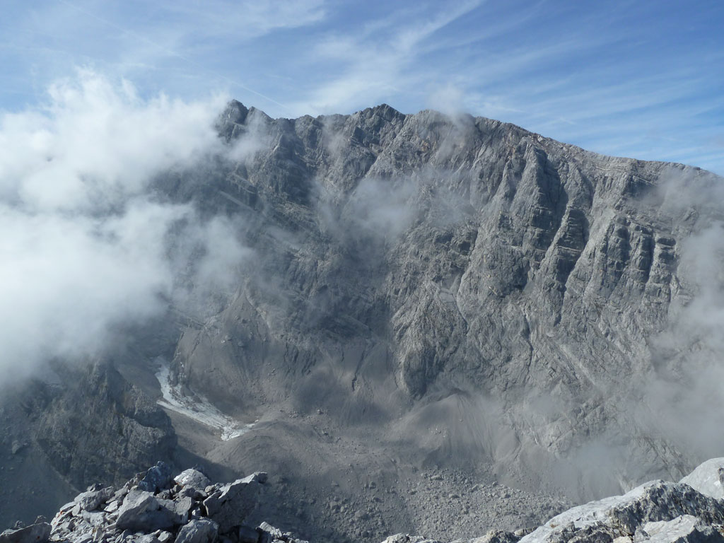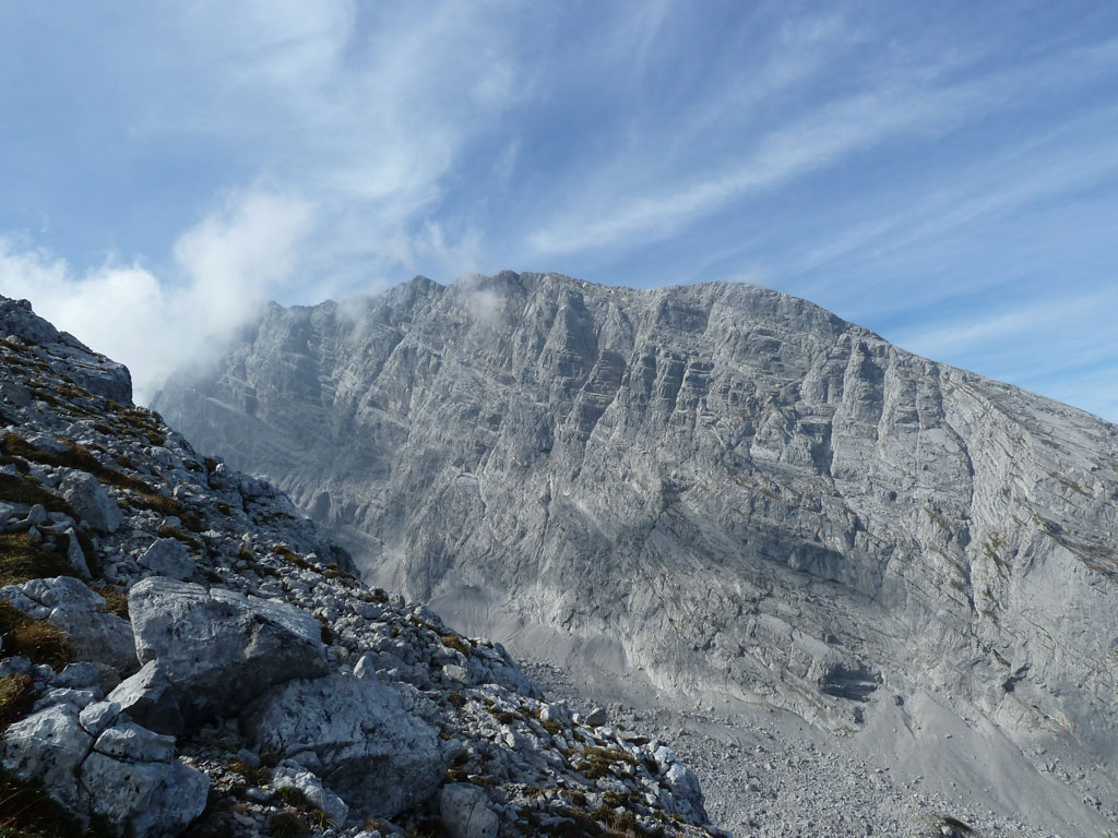 Kombinierte Mountainbike- und Bergtour von Salzburg nach Schönau am Königsee bis zur Kührointhütte, von dort zu Fuss über den Nordostgrat vorbei am sogenannten Gendarm auf den im Vergleich zum Watzmann seltener begangenen Gipfel des Kleinen Watzmann. Von dort hat man üblicherweise gute Einblicke in die Watzmann Ostwand und auf das Wiederband, welches sich im unteren Teil der Wiederroute (direkte Ostwand) befindet. Leider zogen stets einige Wolken oberhalb des Kars hinweg, weshalb Wand und Route nur teilweise sichtbar waren. Dieser Anstieg auf den Watzmann wird vorerst ein Projekt mit Andi bleiben, aber ich hoffe, dass wir in absehbarer Zeit diese Tour angehen werden. Der Abstieg nach Kühroint erfolgte schließlich über den Ostgrat und den Mooslahnerkopf. Bei der Kührointhütte angekommen, gönnte ich mir noch ein kühles Bier und Kuchen, bevor es nach einer flotten Abfahrt wieder zurück nach Salzburg ging.