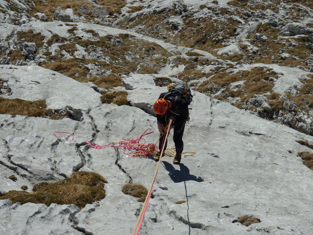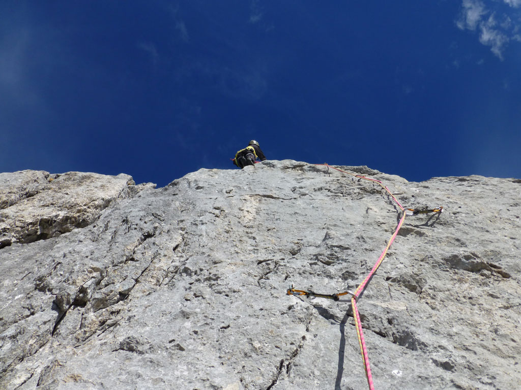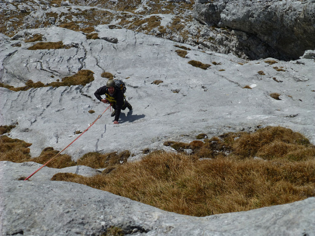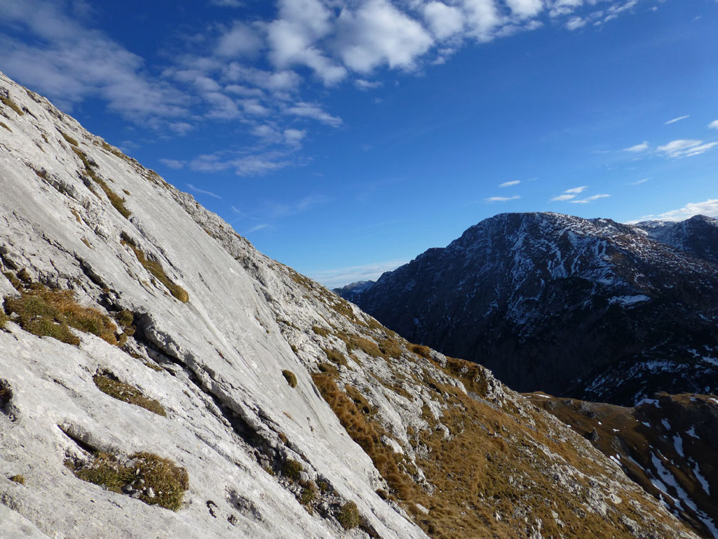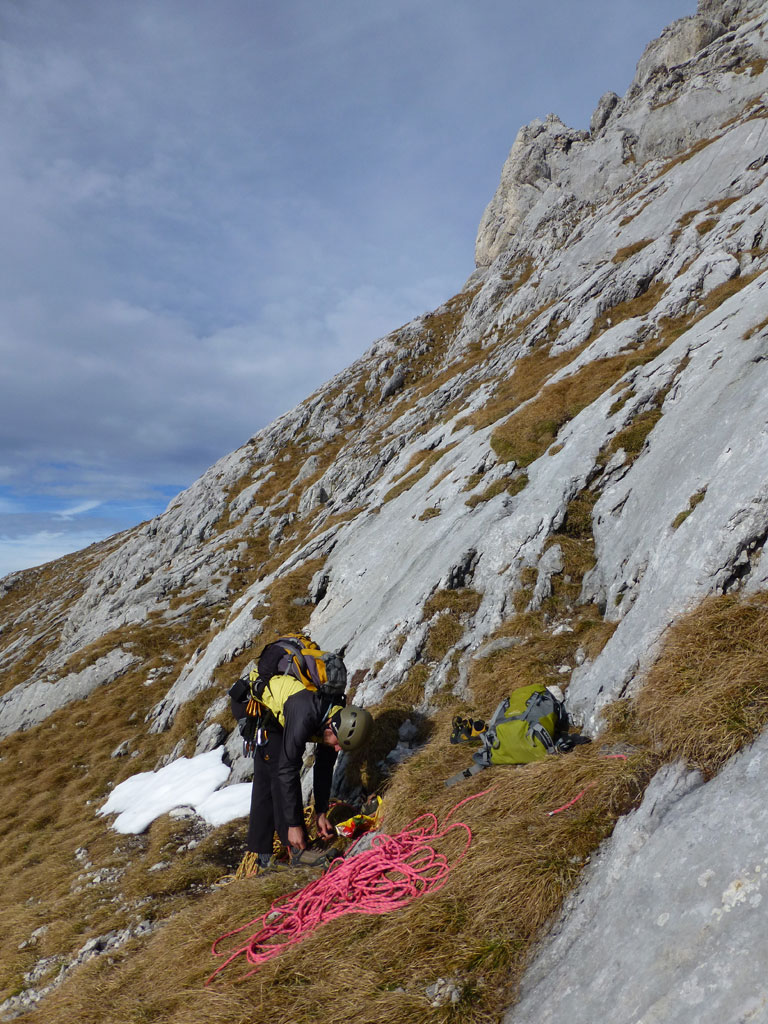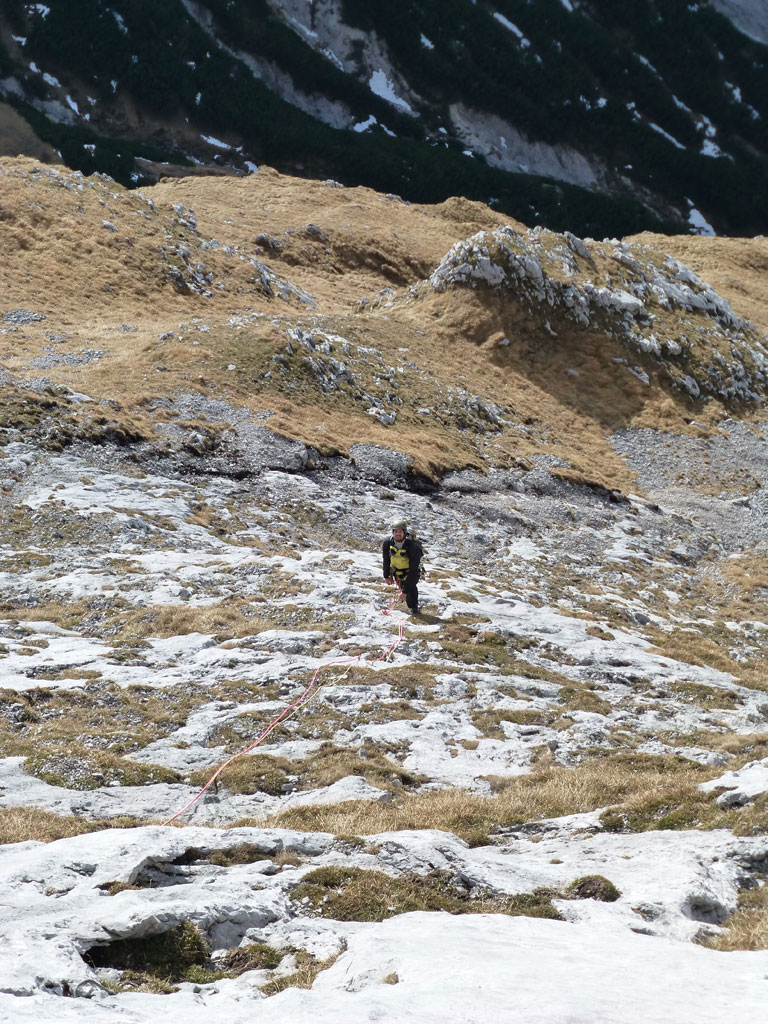 Klettertour mit Andi über die Route Herbsttraum (VI) zum Jägerkreuz am Hohen Brett. Das anhaltend schöne Herbstwetter motivierte uns nach zwei Tagen den Südwestabbrüche am Hohen Brett wieder unsere Aufwartung zu machen, und nach der Made in Austria nun auch die Herbsttraum zu klettern. Alles in allem eine wunderschöne Route mit bester Absicherung, über die wir dieses Mal abseilten und dabei beschlossen, bei nächster Gelegenheit, aber zumindest im nächsten Jahr die schönsten Seillängen aller Routen am Jägerkreuz zu kombinieren.