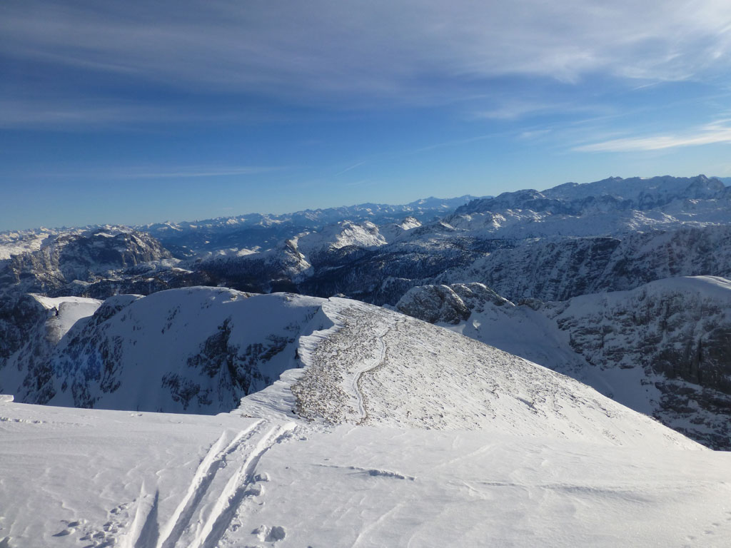 Silvester-Schitour mit Sabine vom Parkplatz Hinterbrand über den Alpeltalsteig und die Umgäng auf den Hohen Göll. Das Wetter am letzten Tag in diesem Jahr war sonnig, was aber mit zunehmender Höhe keine besondere Auswirkung auf die fühlbar kühlen Temperaturen hatte. Ausserdem wäre an so mancher Stelle eine etwas massivere Schneedecke wünschenswert gewesen, aber meine Schi waren ohnehin reif für ein umfangreiches Belagsservice. Alles in allem war es eine wunderschöne Tour und ein perfekter Jahresausklang, aber viel mehr noch eine Inspiration und Motivation für das kommende Jahr.