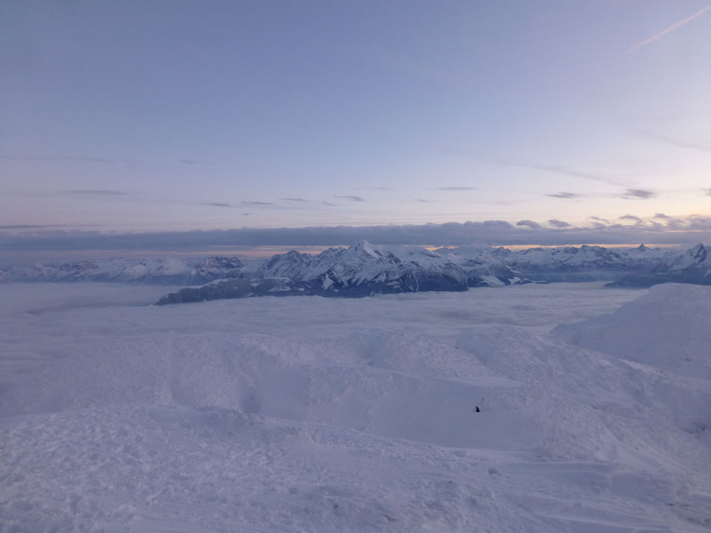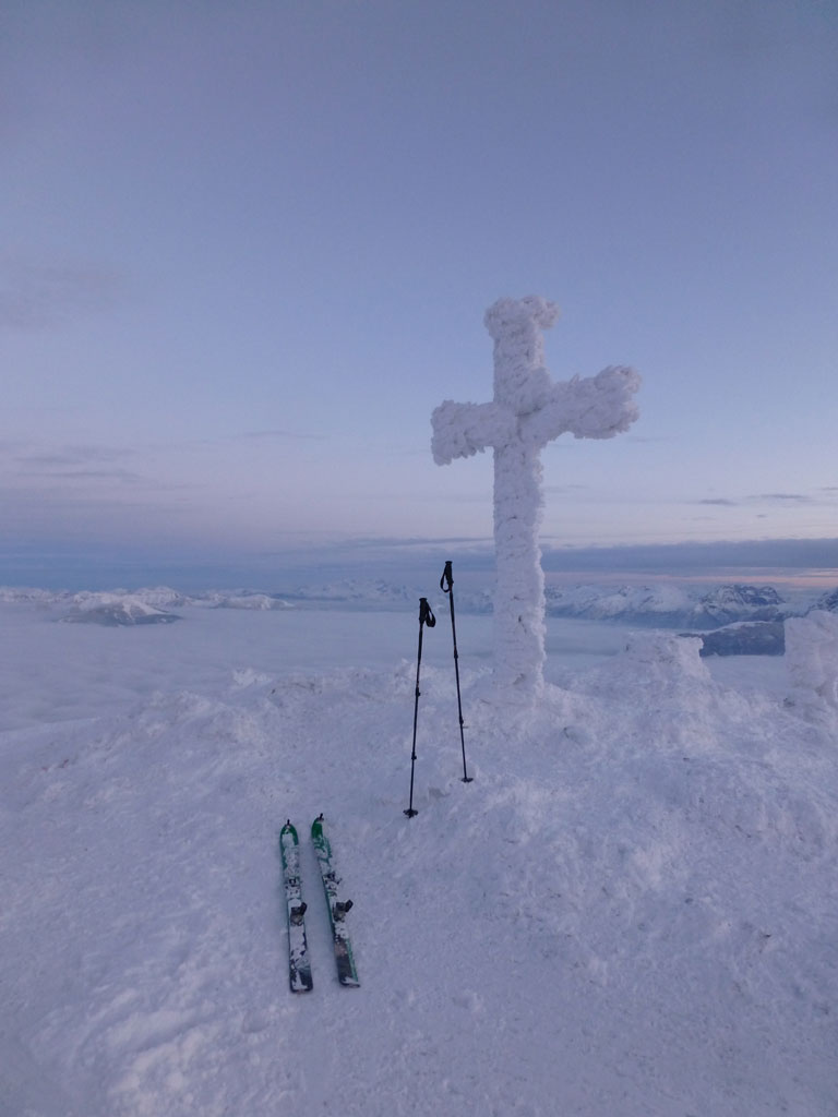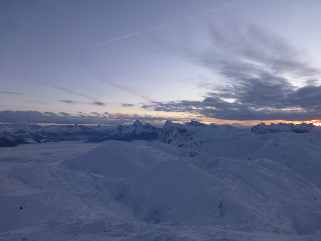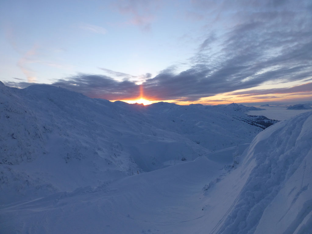 Nachmittagstour mit dem alten Mountainbike von Verena nach Fürstenbrunn und in der Abenddämmerung mit Schi auf den Salzburger Hochthron. Trotz eisiger Temperaturen konnte ich den immer wieder herrlichen Sonnenuntergang am Gipfel dank meiner Primaloft-Jacke genießen. Die Abfahrt war ab der Schweigmühlalm wie üblich etwas ‚holprig‘ und spätestens ab dem Steilhang durfte man wegen Kratzer und Furchen im Belag nicht zimperlich sein. Mit eingefrorenen Fingern gings dann wieder ab nach Hause und dort gleich in die heiße Dusche.