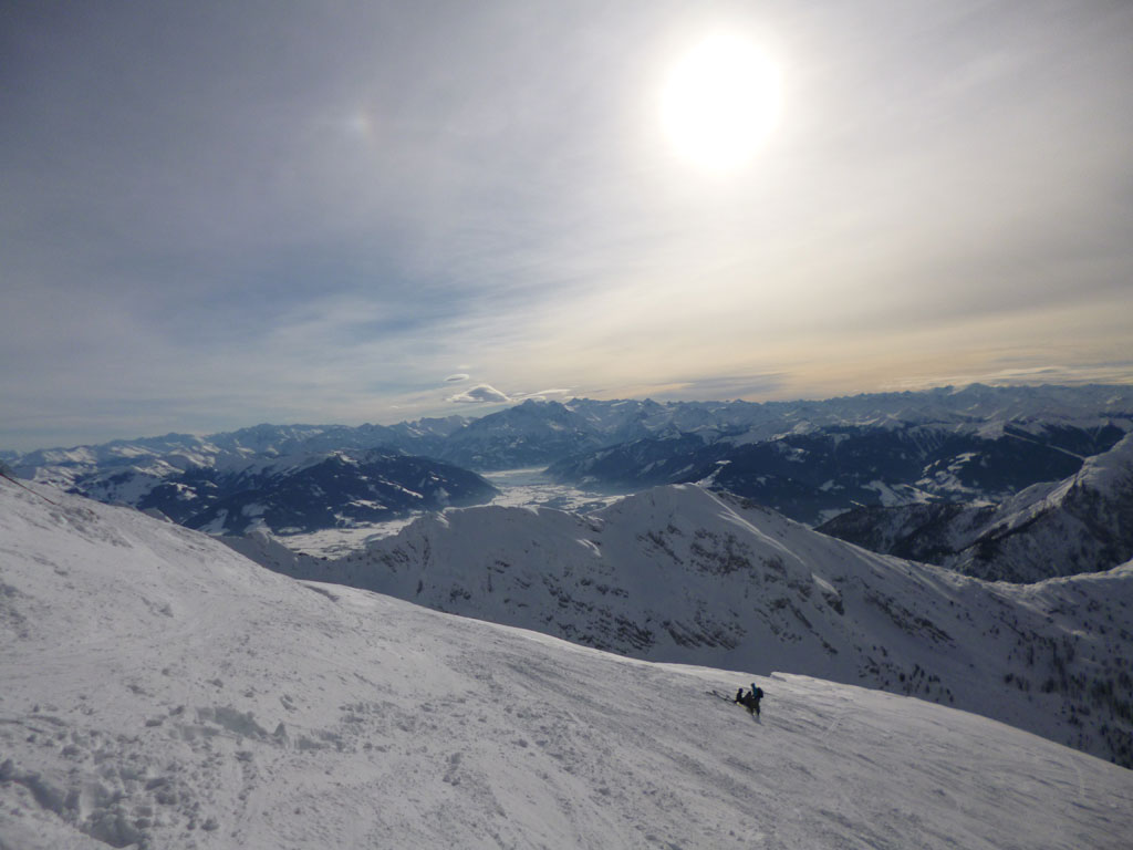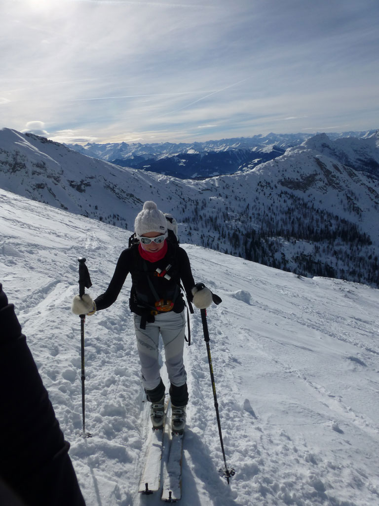 Schitour mit Sabine bei exzellentem Wetter auf das Seehorn. Trotz einer kurzfristigen Ansammlung von Menschen am Gipfel ein gelungener Wochenausklang in herrlicher Umgebung.