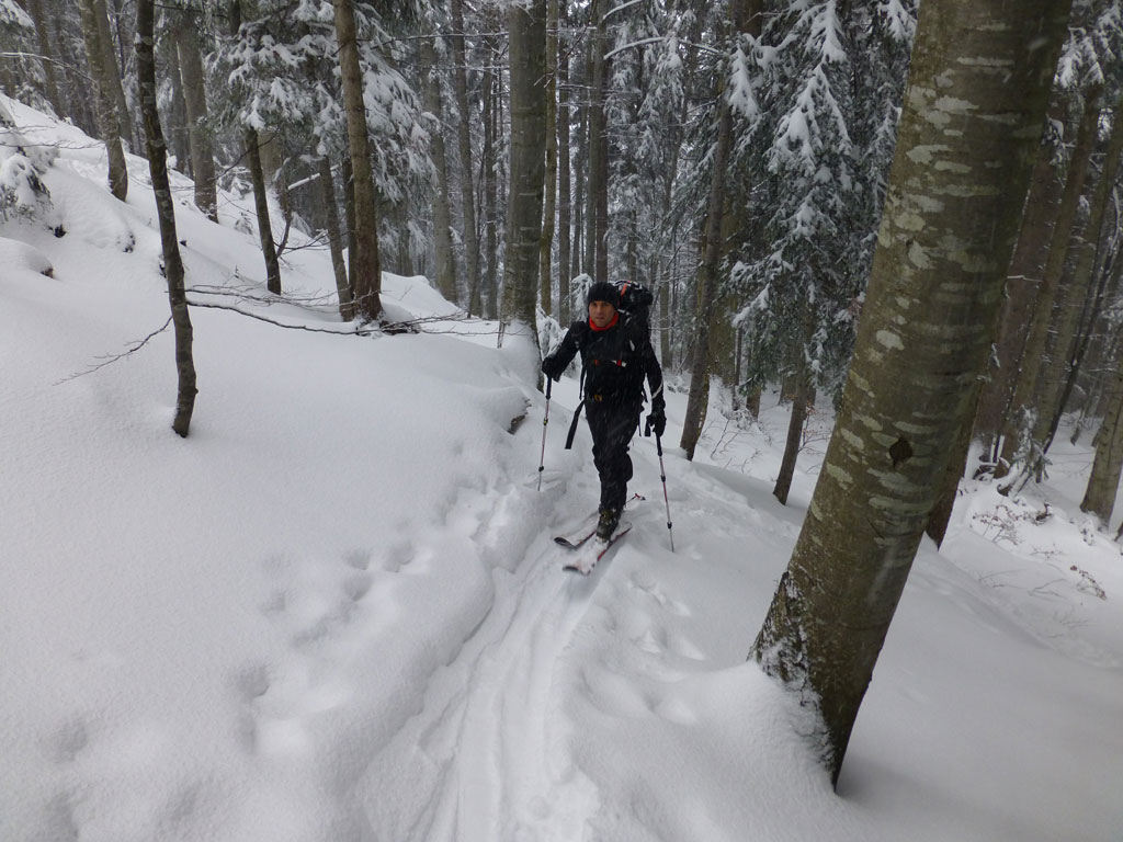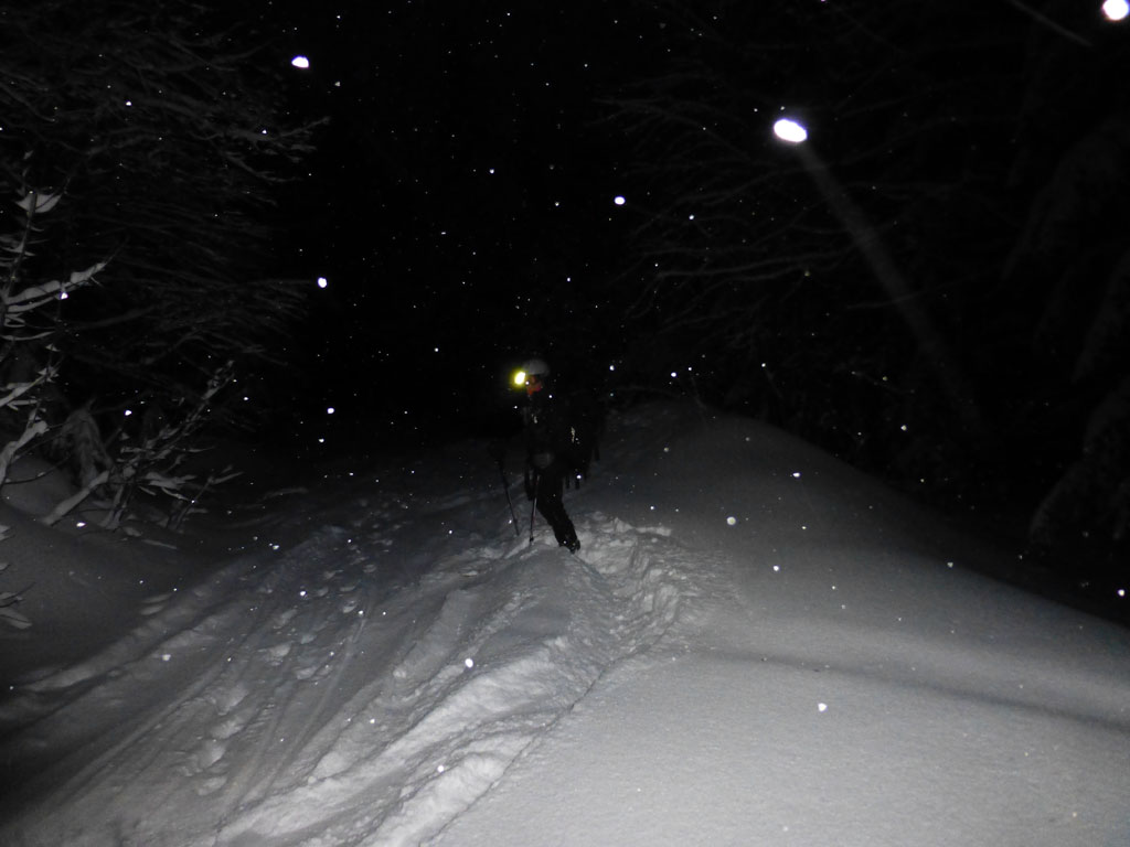 Spontane Nachmittagsschitour mit Markus von Lämmerbach bei Hintersee über die Genneralm auf den Hohen Zinken bei tollen Schneebedingungen aber teilweise null Sicht, Sturm, Schneefall und eisiger Kälte… Irgendwo unter dem Gipfel entschlossen wir uns dann ohne große Diskussion schnellsten die Abfahrt anzutreten, nachdem der Whiteout perfekt war. So kurvten wir anfänglich blindlings nach unten, bis sich der Nebel wieder etwas lichtete. Schließlich hies es dann bei der Genneralm noch Stirnlampe einschalten und bei Dunkelheit und Schneegestöber Abfahrt zum Parkplatz.