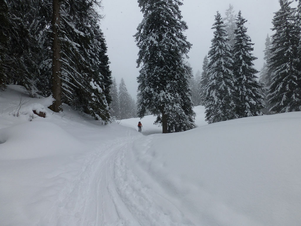 Schitour mit Markus vom Parkplatz Königsee über das Königstal auf das Stahlhaus. Das eigentliche Ziel, der Schneibstein war trotz super Schneebedingungen an diesem Tag aufgrund der schlechten Sicht und dem spätem Aufsteig keine Option mehr für uns.