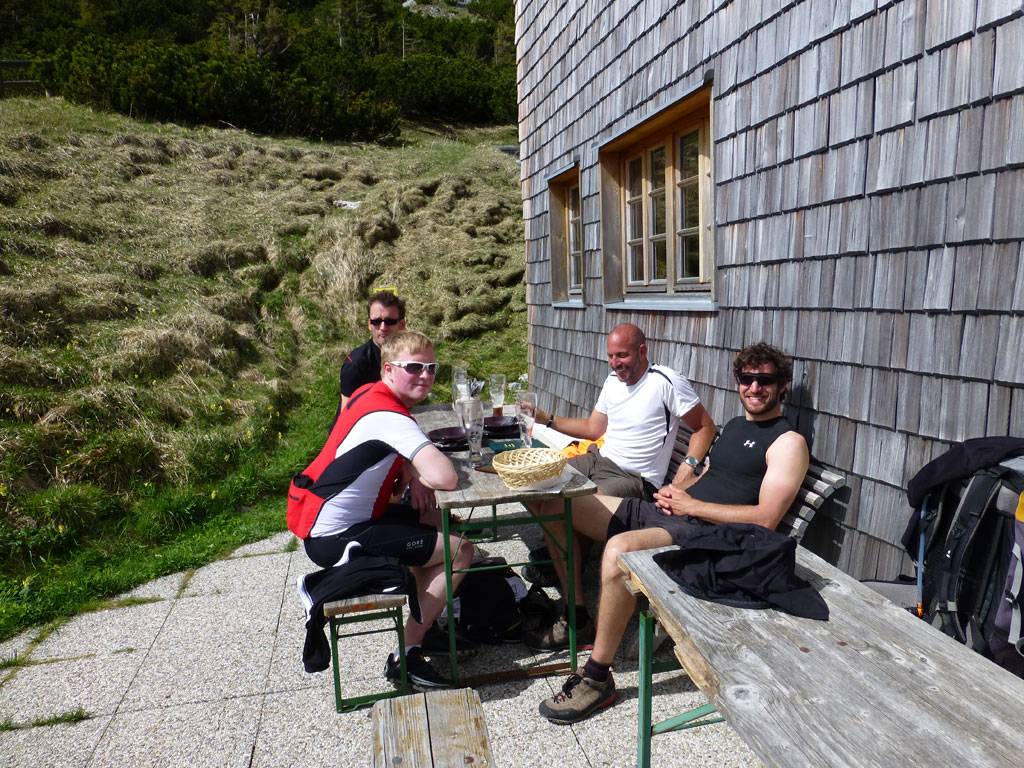 Mountainbiketour mit Andi, dem schönen(!?) Andi, Kurt und einem deutschen Kollegen von Salzburg über das Bluntautal auf das Stahlhaus, weiter bis nach Hinterbrand, dann über Oberau und Dürrnberg nach Hallein. Beim Stahlhaus gönnten wir uns das eine oder andere wohlverdiente Bier, aber zum Glück ließen wir die Finger vom Schnaps. Aber auch ohne hochprozentigen Alkohol, registrierte ich bei der Abfahrt in der ersten engeren Kurve, dass ich nicht mehr komplett nüchtern war. Somit hieß es mehr bremsen, weniger Speed, dafür keine überflüssigen Ausflüge ins Gemüse…