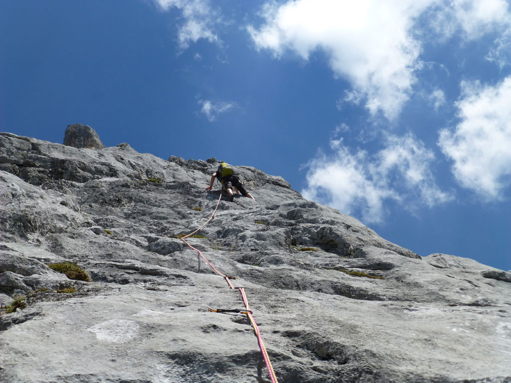 Klettertour mit Andi über die Route Fun in the Sun (VI) auf den Verbindungsgrad zwischen Kleinen und Großen Fieberhorn. Alle Seillängen sind mehr als ausreichend mit Bohrhaken abgesichert und die Schlüsselstelle (VI) kann bei Bedarf A0 geklettert werden. Eigentlich wollten wir auch die oberen Seillängen der Route Panorama (V+) bis zum Gipfel des Großen Fieberhorns klettern, aber weil Andi etwas angeschlagen war, entschieden wir uns zum Abseilen über den Werfener Traumpfad und traten den Rückweg über die Thronleiter zum Parkplatz an.