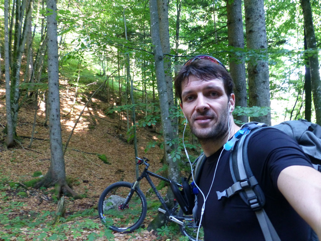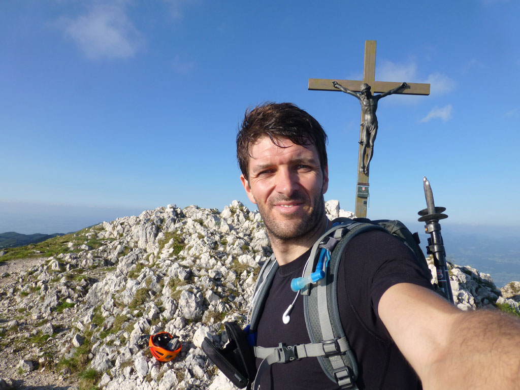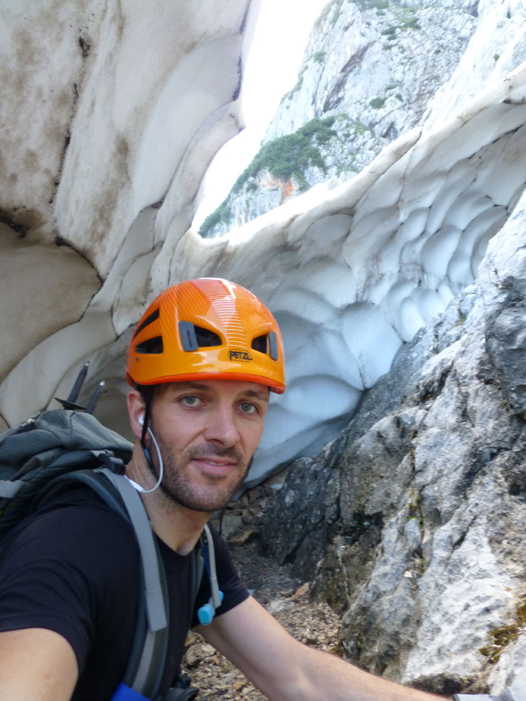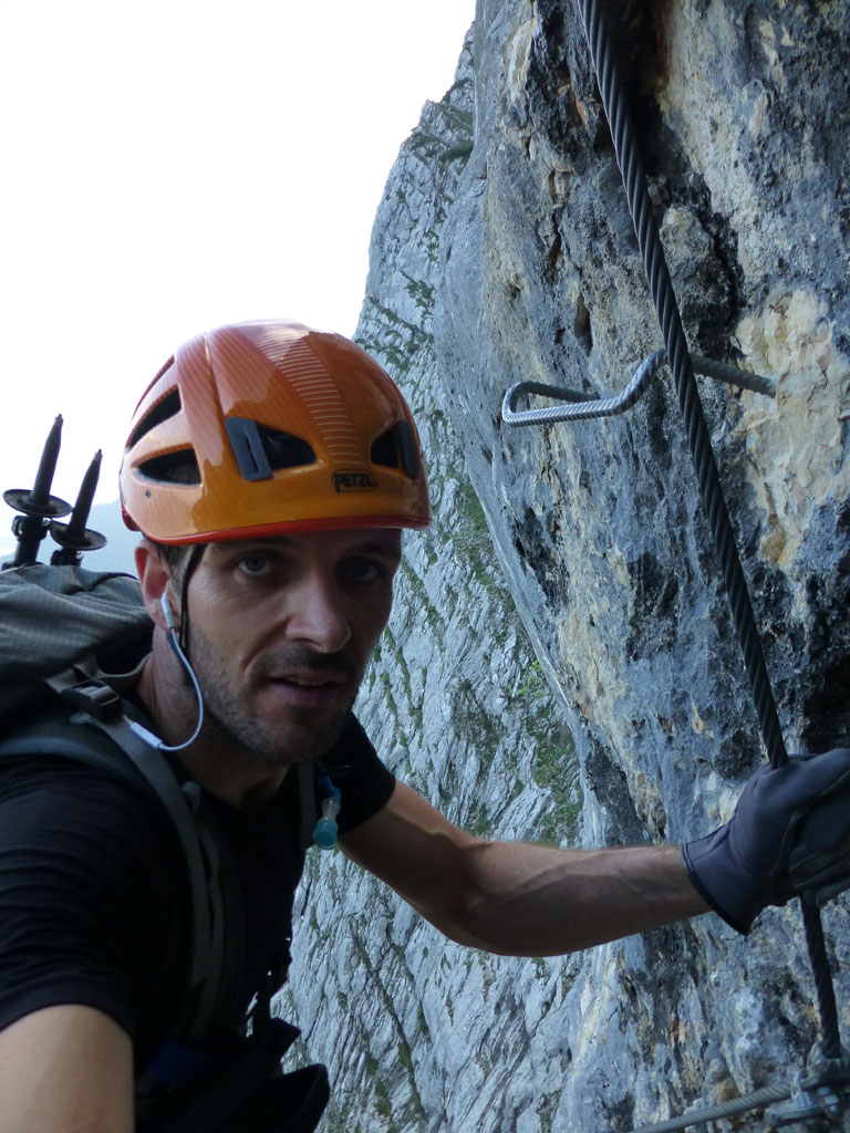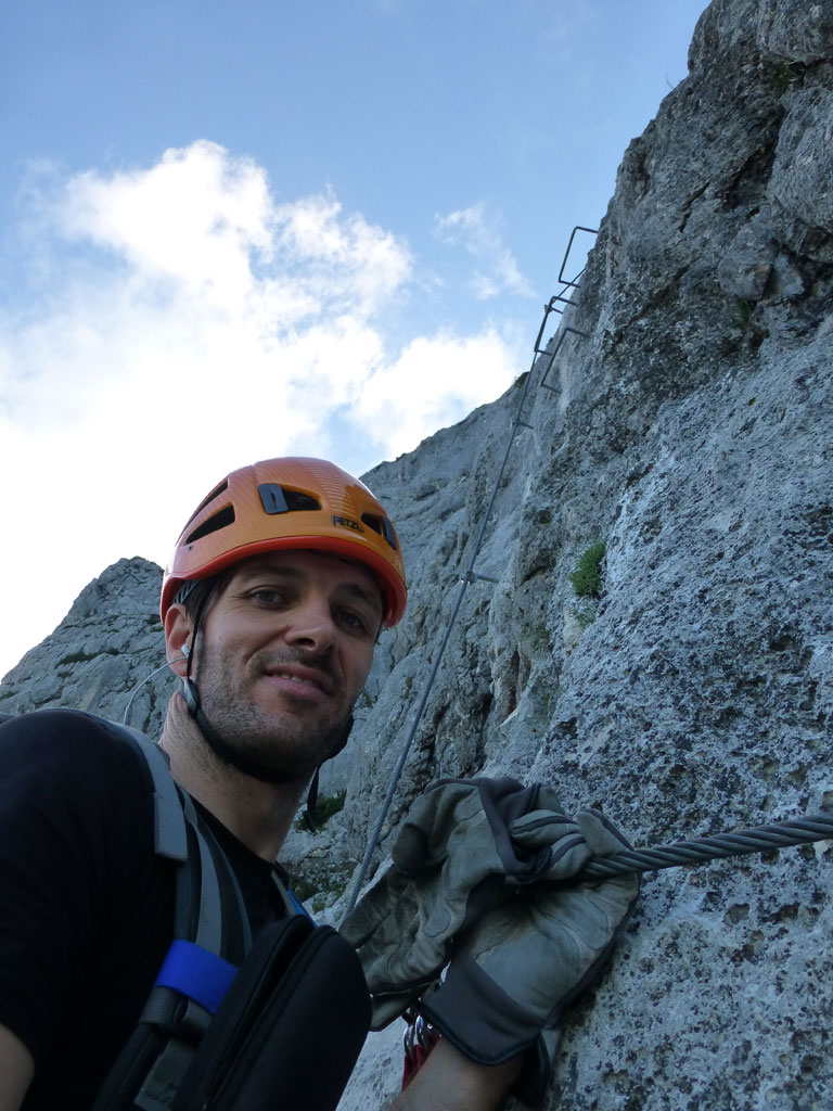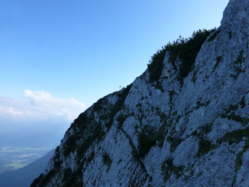 Nachmittagstour mit dem Mountainbike von Salzburg nach Marktschellenberg und zum Roßboden, weiter zu Fuß über den Scheibenkaser zum Hochthron-Klettersteig, wo ein Altschneefeld mit Randkluft den Einstieg richtig spannend gestalltete. Bei milden Abendtemperaturen geht es dann zügig bis zum Ausstieg und von dort auf den Berchtesgadener Hochthron. Der Rückweg erfolgte vorbei am Störhaus durch das Mittagsloch zurück zum Scheibenkaser und hinunter zum Bike. Nach rasanter Abfahrt über den Forstweg und die Strasse nach Marktschellenberg ging es in entspannter Fahrt zurück nach Salzburg.