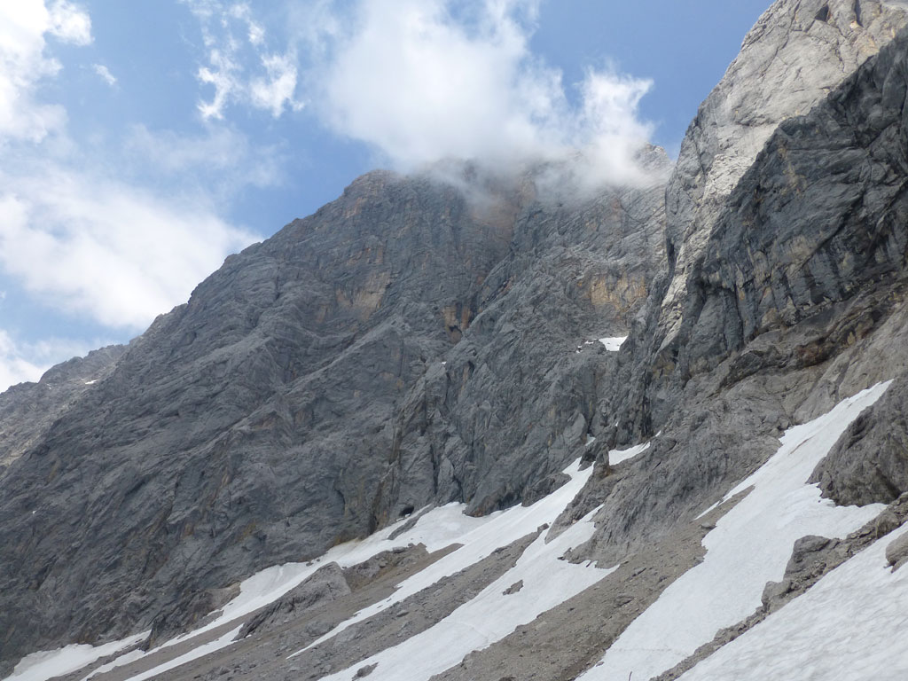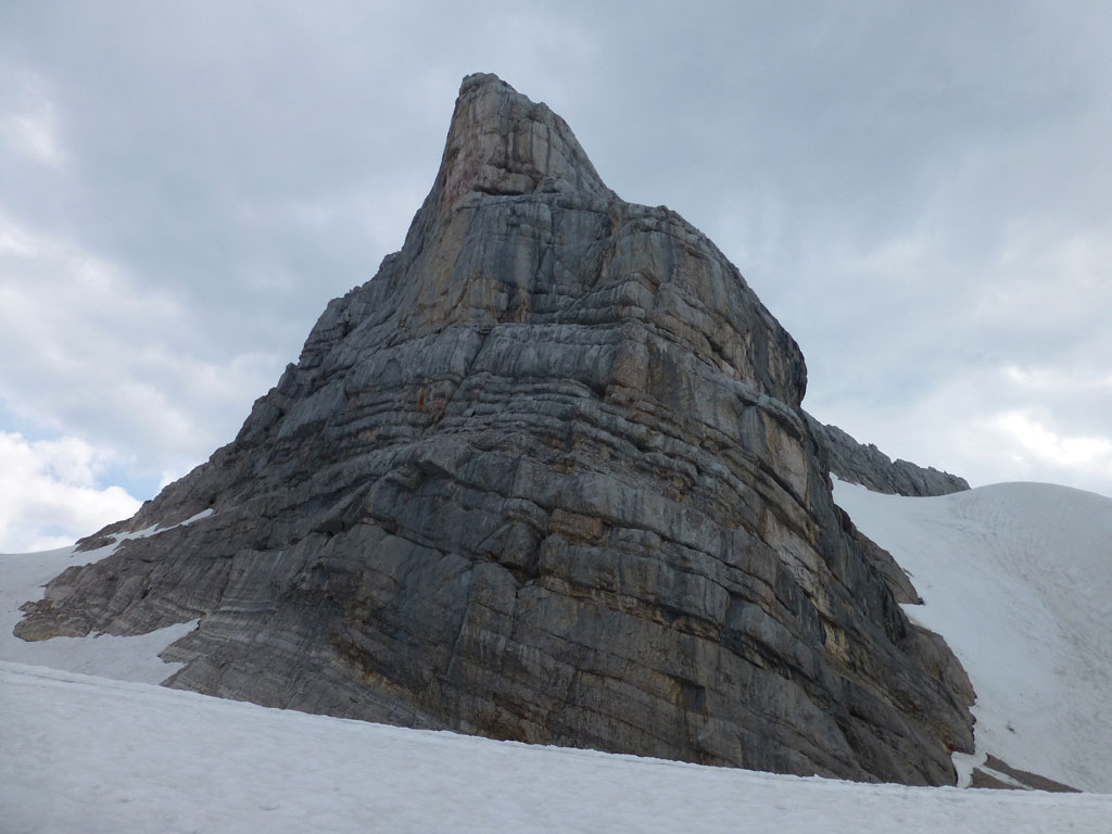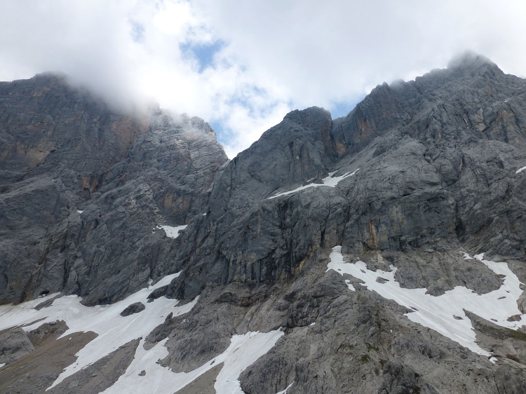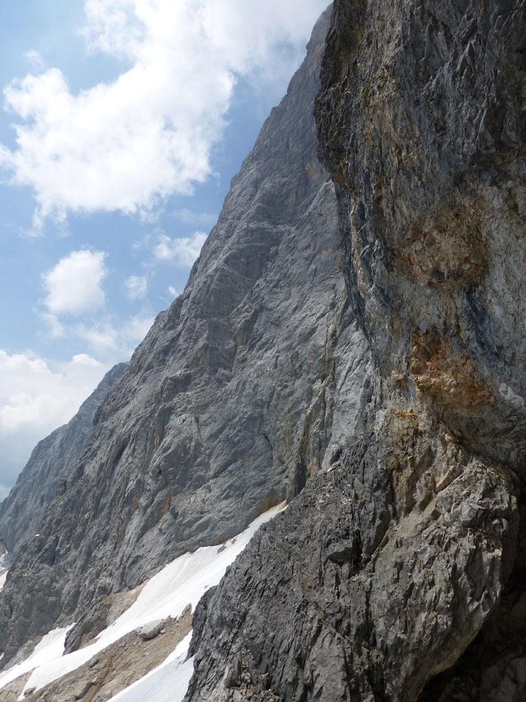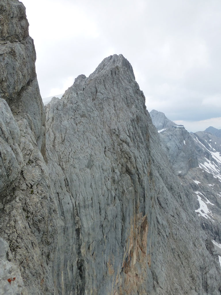 Die wirklich gelungene und durchaus sinnvolle Kombination der drei versicherten Anstiege bis zum Gipfel des Hohen Dachsteins lässt keine Wünsche offen. Vor allem die perfekten Einblicke in die mächtige Südwand mit den unter anderem klassischen Kletterouten wie Steiner- und Pichlweg sind Grund genug, früher oder später auch diese Wand einmal zu besteigen. Nach dem Johann Klettersteig verdichtete sich ab der Seethalerhütte die Bewölkung deutlich, und es begann leicht zu nieseln. Somit blieben mir die sonst üblichen Menschenmassen am Schulteranstieg zum, und in erster Linie auch am Gipfel erspart. Am Rückweg über den Hallstätter Gletscher entschloss ich mich für die Variante ‚Schnellabstieg‘ und leistete mir den Luxus einer Seilbahnfahrt.