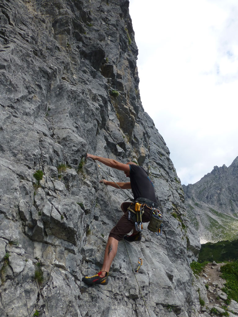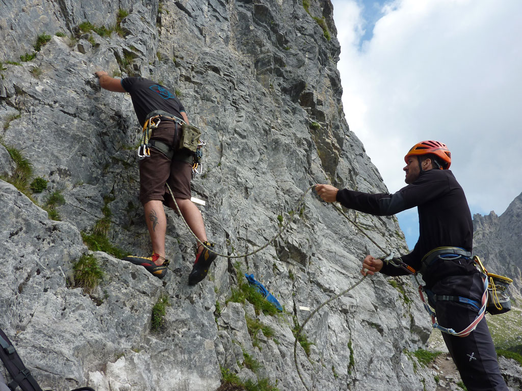 Kletterausflug mit Andi und Chris zum Klettergarten bei der Hopürgelhütte. Die Klettermöglichkeiten hier sind beinahe unbegrenzt, unzählige Routen in allen Schwierigkeitsgraden an rauem Dachsteinkalk mit super Absicherung lassen kaum wünsche offen. Uns hat’s auch viel Spaß gemacht, auch wenn dann am Nachmittag die Kletterpower der Müdigkeit, vor allem im Kopf, gewichen ist. Dafür gönnten wir uns bei der Hütte Bier und Kuchen, philosophierten noch länger über Kletterrouten und -Möglichkeiten an den umliegenden Gipfeln, bevor wir entspannt den Rückweg zum Parkplatz antraten.