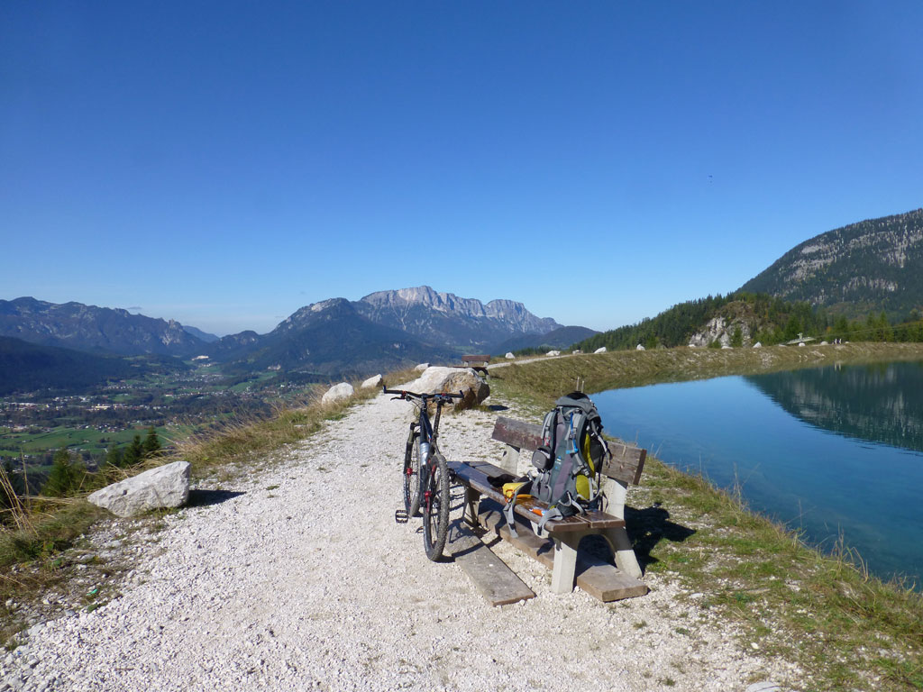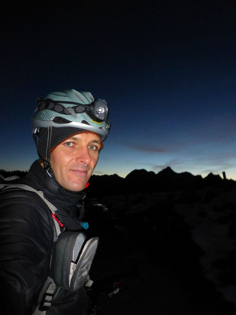 Späte Mountainbiketour zum Wochenausklang von Salzburg über Oberau und Hinterbrand auf die Gotzenalm und wieder zurück via Berchtesgaden und Marktschellenberg. Eigentlich hatte ich nicht mit einer derartigen Schneefahrbahn gerechnet, und irgendwann war’s dann vorbei mit radeln, also war schieben angesagt. Auf der Gotzenalm angekommen stach mir sofort der leicht mit Schnee bedeckte Kahlersberg ins Auge. Kurz entschlossen, machte ich mich zu Fuss auf den Weg zum Hochgschirr. Dort angekommen, musste ich auf den ersten Höhenmetern von der Scharte in Richtung Gipfel schnell feststellen, dass die nicht mehr so unerhebliche Schneedecke den Aufstieg äusserst mühsam machte. Der Tag neigte sich auch schon dem Ende zu, weshalb ich mich sinnvollerweise für die Umkehr zur Gotzenalm entschied. Im Laufschritt ging es dann zurück zum Bike, und nachdem die Sonne untergegangen war, machte ich mit Stirnlampe auf die (im Schnee recht spannende) Abfahrt und den Rückweg nach Salzburg.