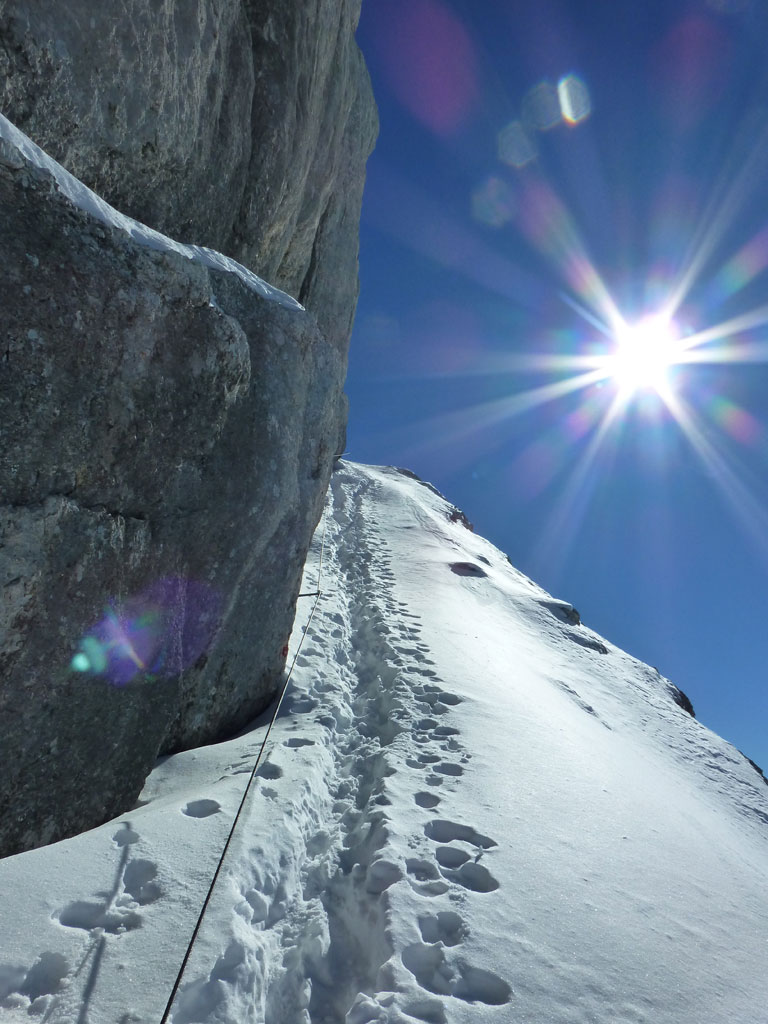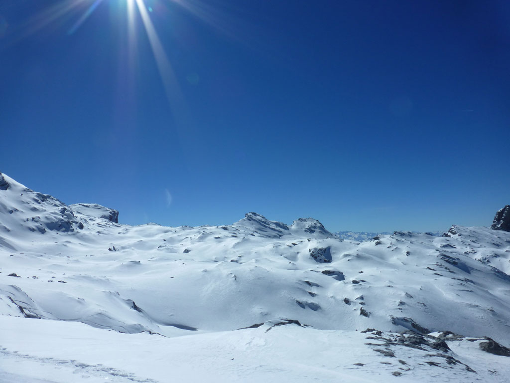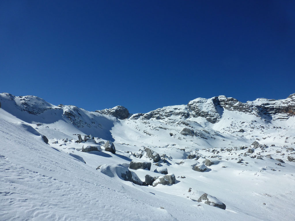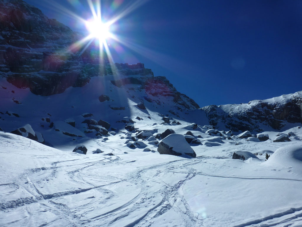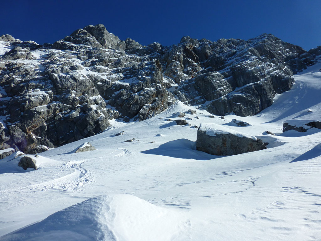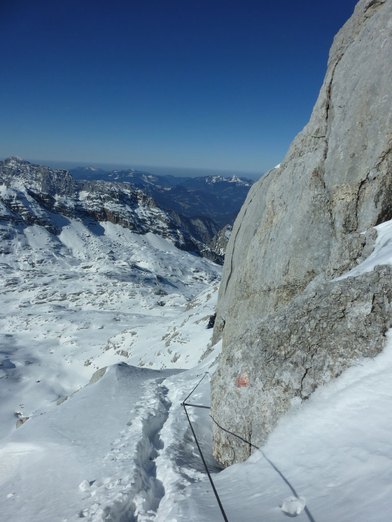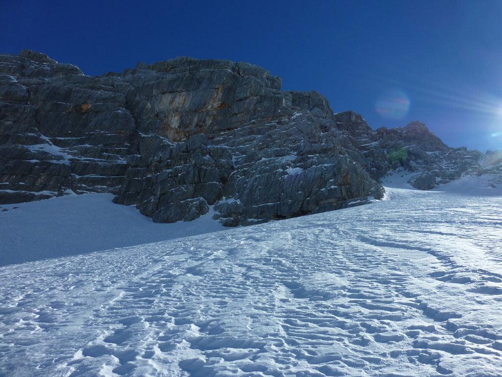 Schitour bei perfektem Wetter über das Ebersbergkar und Kuchelnieder auf das Birnhorn. Schön, wenn man wochentags kurzfristig Urlaub bekommnt, und nachdem ich mir diese Tour jedes (Früh-)Jahr aufs Neue vornehme, war es heute endlich soweit. Morgens noch schnell das Auto bei der Kfz-Werkstätte meines Vertrauens abgeliefert, und dann mit dem Leihwagen ab nach Weißbach bei Lofer. Vom Parkplatz beim Hackerbauer ging es vorerst viele Höhenmeter zu Fuß in Richtung Ebersberg-Jagdhütte, und dann stetig aufwärts durch das Ebersbergkar zum Kuchelnieder. Dort deponierte ich die Schi und machte mich bei strahlendem Sonnenschein und recht ordentlichen Temperaturen auf zum Gipfel. Die letzten Höhenmeter waren doch noch recht fordernd, jedoch entschädigte mich der grandiose Ausblick und die himmlische Ruhe vollends für die Mühen und den Schweiß. Nach einer für meine Verhältnisse längeren Pause trat ich den Rückweg zum Schidepot an. Vom Kuchelnieder startete dann die lange Abfahrt bis zum letzten Schneefleck unterhalb der Jagdhütte. Anfangs gestaltete sich das Ganze noch mehr oder minder elegant, mit abnehmender Schneequalität dann schon etwas wackeliger, zwischenzeitlich durfte auch ein akrobatischen Vorwärtssalto nicht fehlen, bis ich schließlich mit letzter Kraft erleichtert und müde die Schi abschnallte. Eine Supertour an einem perfektem Tag, die im nächsten Jahr wieder fix am Programm steht 🙂 !