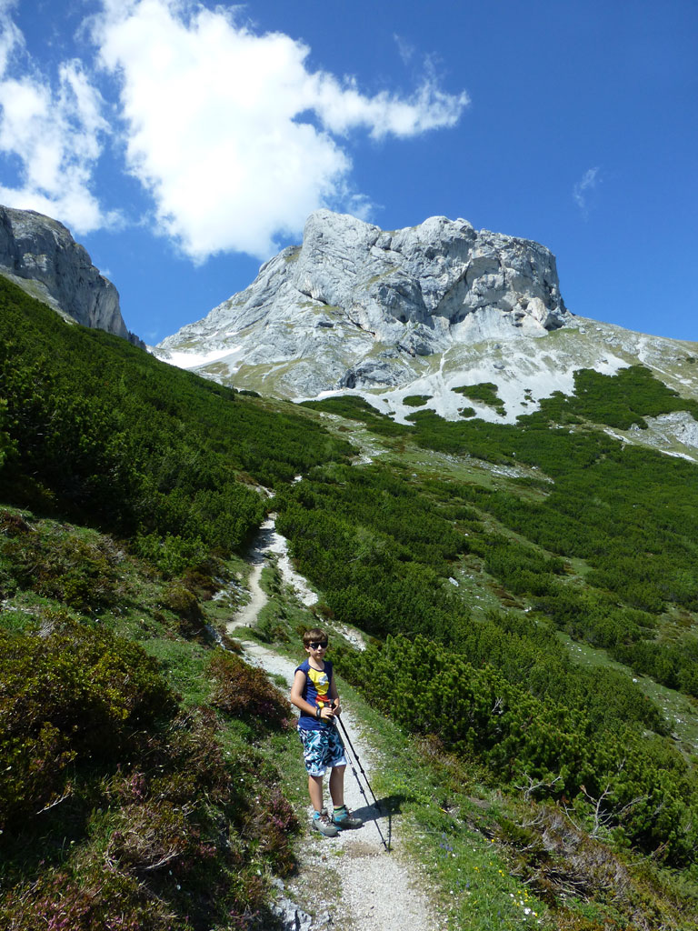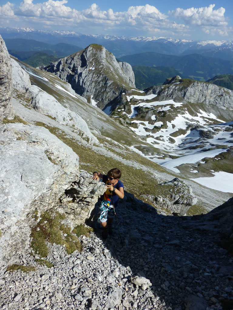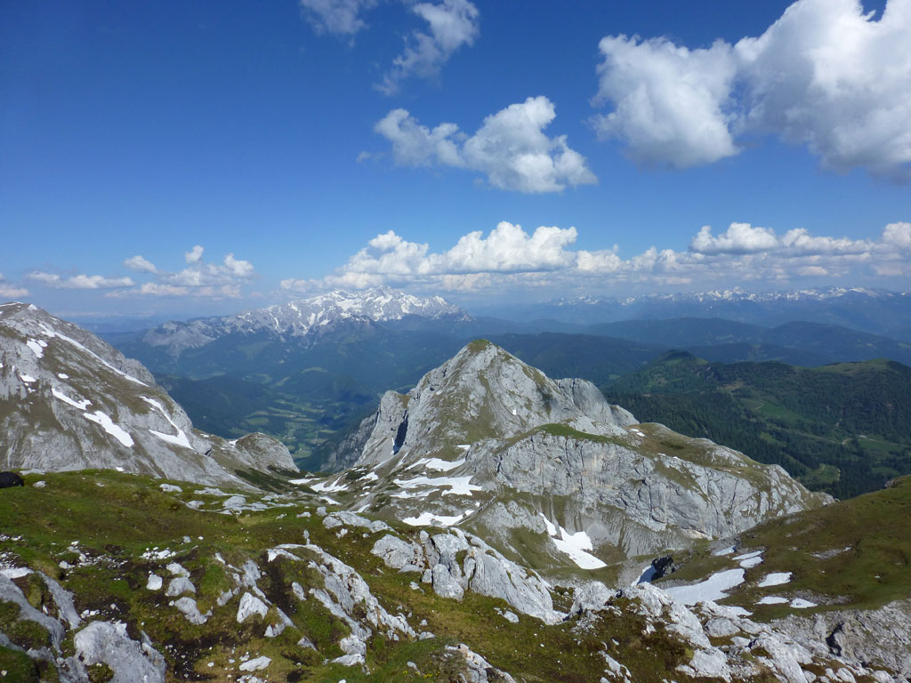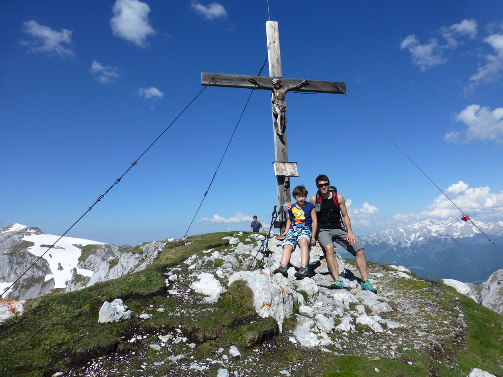 Der Abstieg vom Brietkogel zur Tauernscharte war wider Erwarten anspruchsvoller als gedacht, aber stellte uns vor keine nenenswerte Probleme. Auf der letzten Erhebung des Tages, dem Tauernkogel angekommen, machten wir abermals eine kleine Pause und schweiften mit den Blicken zum nahe gelegenen Dachsteingebirge. Aber noch viel wichtiger, wir beschlossen, dass wir uns heute zum Abendessen definitiv saftige Burger mit Pommes gönnen werden. Als kleine Auffrischung beim Abstieg zum Parkplatz tranken wir in der Hackel-Hütte noch ein Cola, bevor wir schließlich müde aber sehr zufrieden beim Auto ankamen. Wieder einmal konnten wir den Tag für eine spontane, sehr ausgiebige und erstklassige Bergtour nutzen, und David überraschte mich wie immer mit seinem mentalen Durchhaltevermögen und einer ausgezeichneten Kondition.