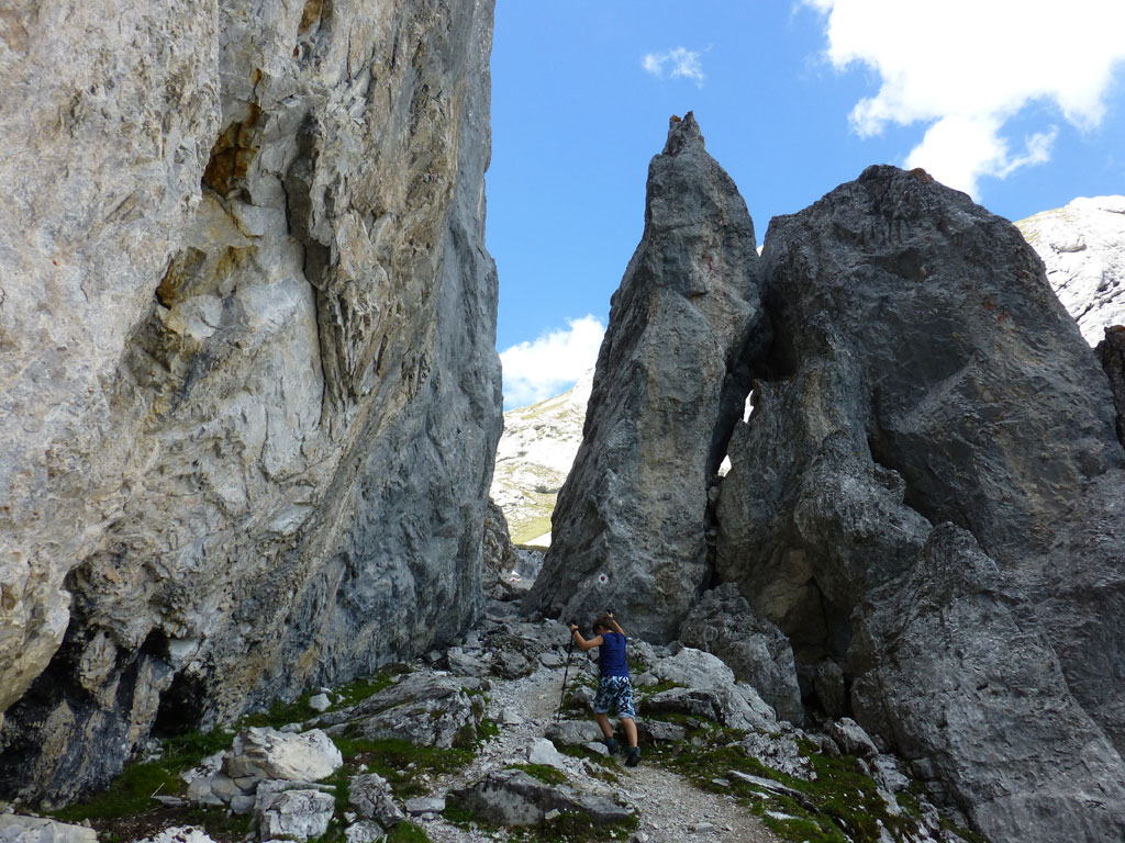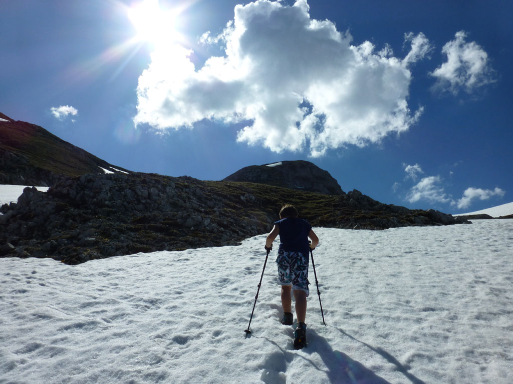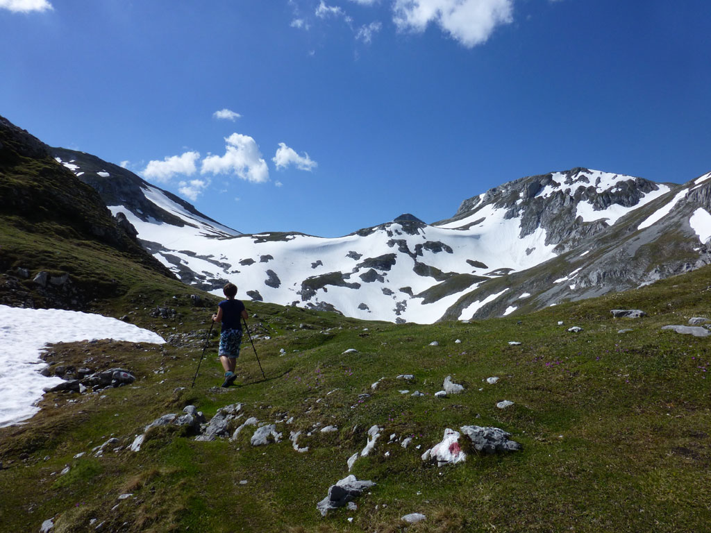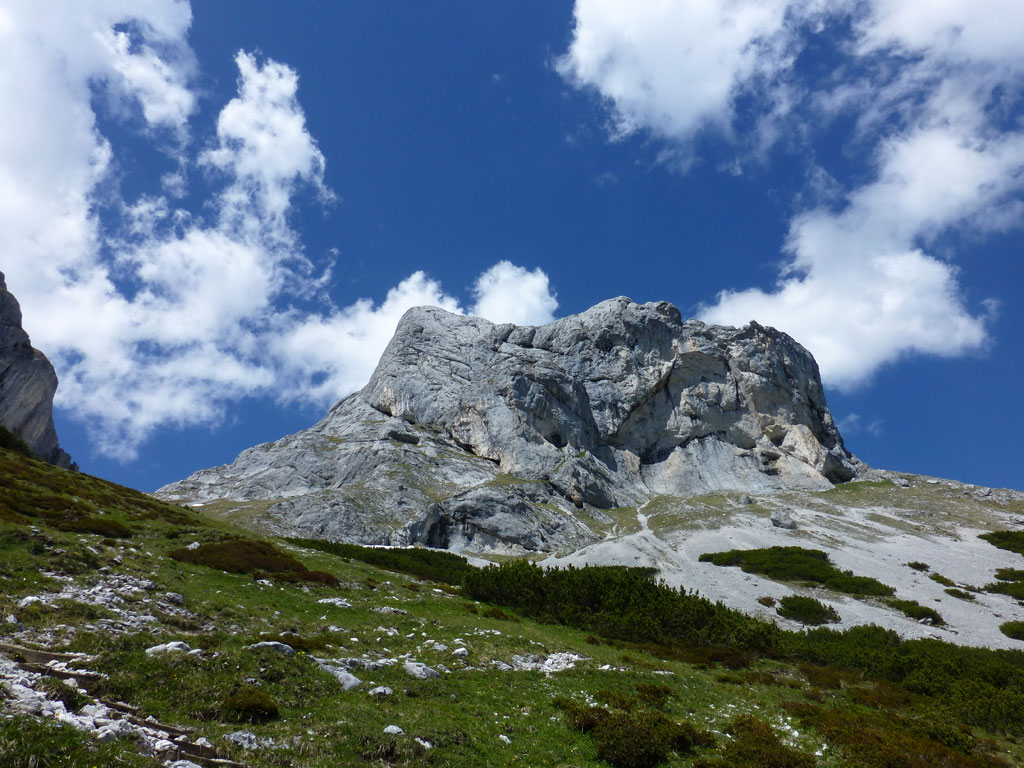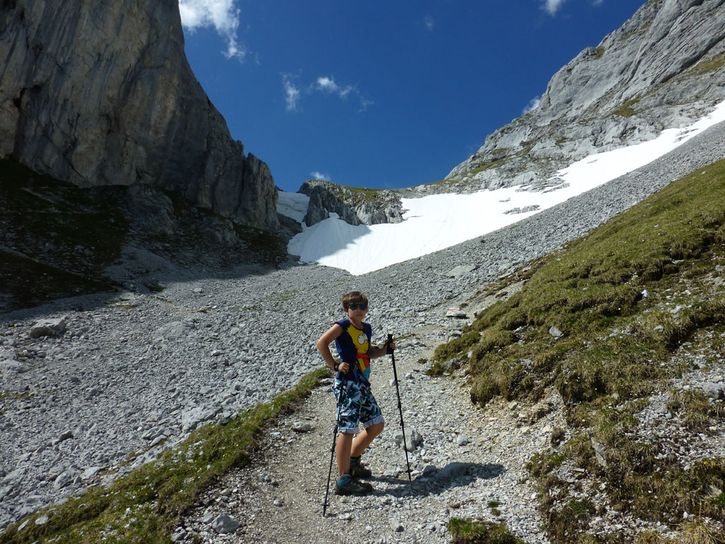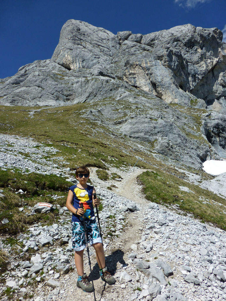 Zwei Wochen nach unserer letzten Tour auf den Großen Donnerkogel verschlug es David und mich an diesem überaus sonnigen und warmen Tag ins südliche Tennengebirge. Vom großen Parkplatz in der Wengerau brachen wir am frühen Nachmittag zur Dr.-Heinrich-Hackel-Hütte auf. Hinter der Hütte machten wir eine kurze Rast bevor wir den Aufstieg bis zur Tauernscharte in Angriff nahmen. Am Weg zur Scharte studierte ich eingängig die Südwand des Tauernkogel und vor allem den Routenverlauf der Tauerngold, die sich ganz oben auf meiner Liste lohnender Kletterziele befindet. Von der Tauernscharte aus eröffnete sich dann die herrlicher, teileweise noch mit viel Schnee bedeckte Berglandschaft des Tennengebirges. Frei nach dem Prinzip ‚Ronda Grande‘ bestiegen wir der Reihe nach den Eiskogel, die Schartwand, den Brietkogel und schließlich noch den Tauernkogel.