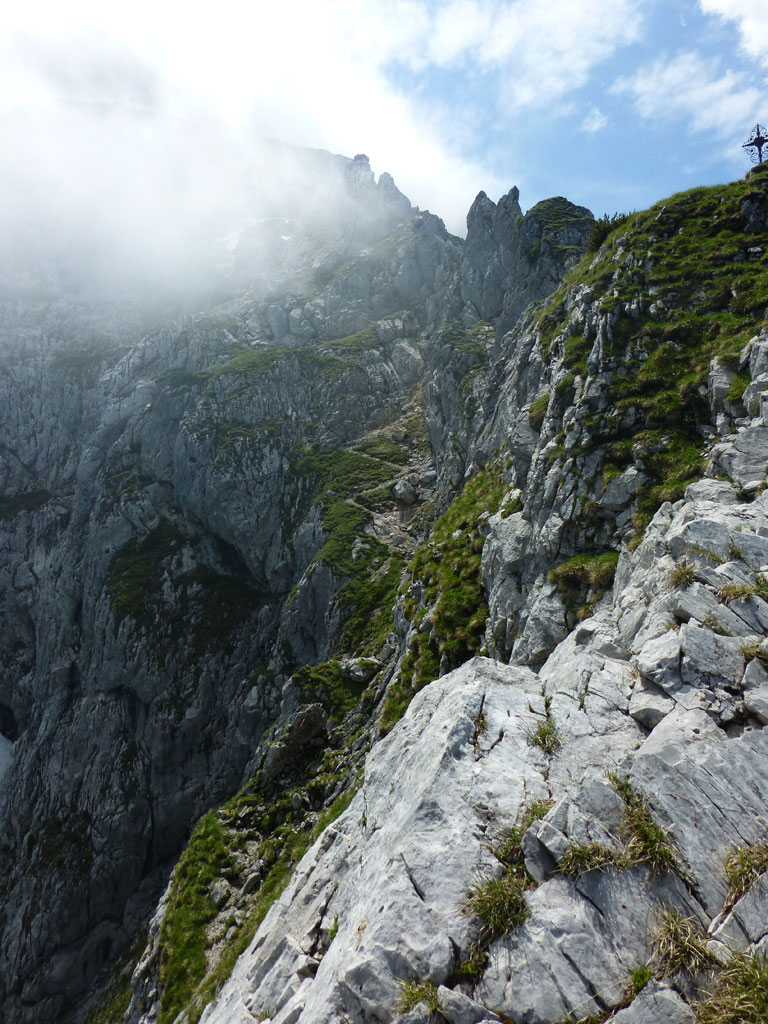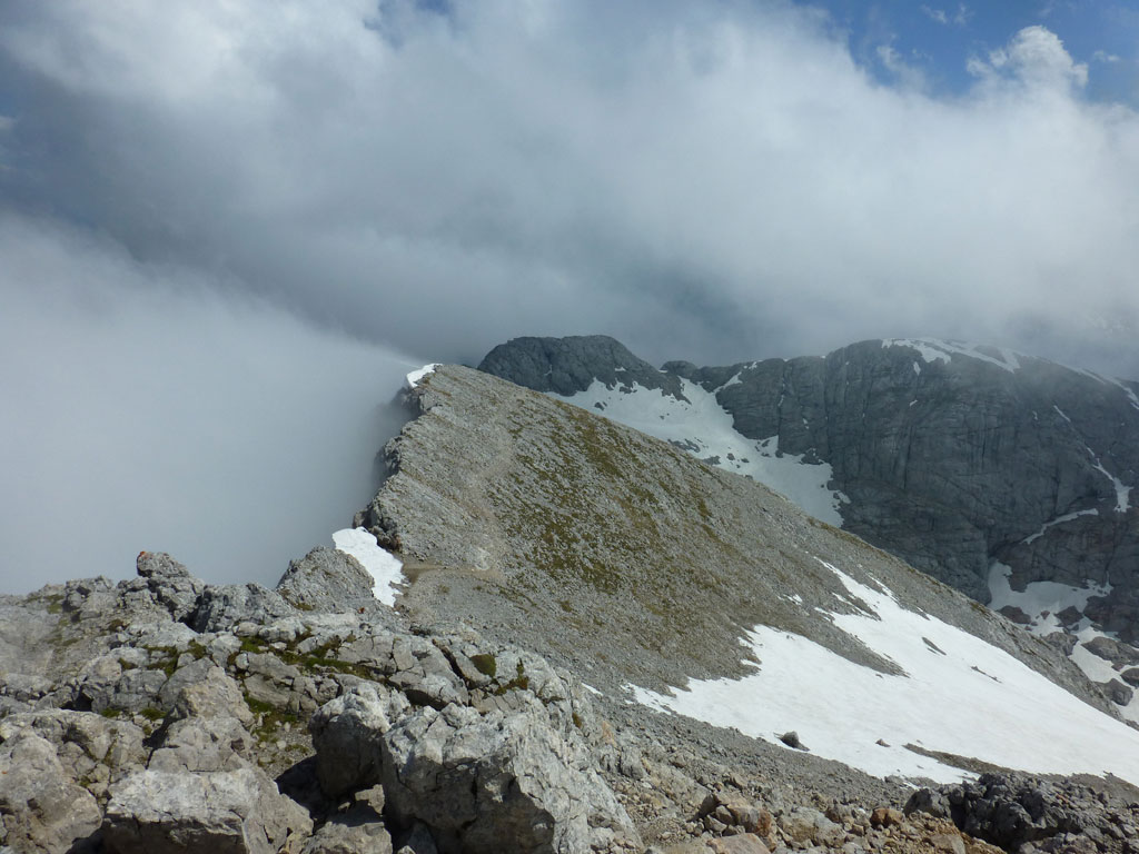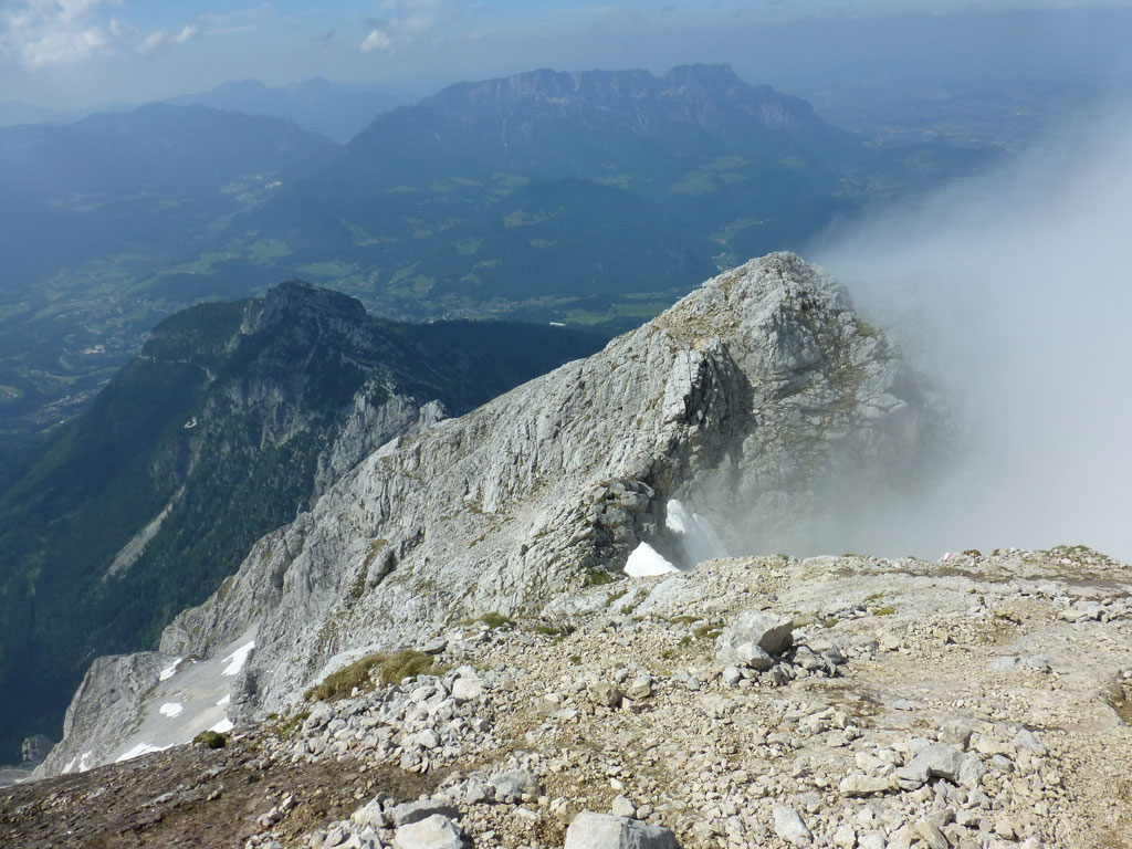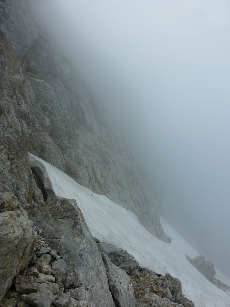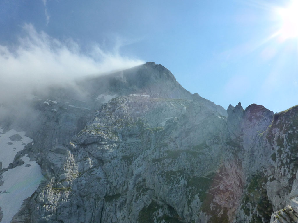 Es ist ein schöner Sonntagnachmittag, aber ich bin unschlüssig was ich mit dem Tag anstellen soll. Für eine großartige Planung ist es schon zu spät, also breche ich kurz entschlossen zum Hohen Göll über das Purtschellerhaus auf. Es ist schon einige Jahre her, dass ich den Anstieg über den Schustersteig unternommen habe, somit steht einer großartigen Bergtour nichts im Wege. Über den Eckersattel geht es folglich via Purtschellerhaus und Schustersteig auf den breiten Rücken des Hohen Gölls bis zum Gipfel. Erwartungsgemäß liegen an vielen Stellen hartnäckige Altschneefelder, und als ich beim Abstieg über den Kamin ein solches queren muss, stelle ich fest, dass ich ohnen Steighilfen oder Pickel garantiert einen Abflug auf der geradezu eisigen Oberfläche mache. Also zurück an den Start, oder zumindest wieder den Kamin hinauf und über den Schustersteig hinunter zum Purtschellerhaus. Für ein Bier wäre zwar noch genung Zeit, aber ich stapfe gleich weiter zum Parkplatz, fahre nach Hause und gehe im Kopf nochmals die Situation am Schneefeld durch. Mein Fazit ist, dass es (für mich) klug war, in solchen vermeintlich unkritischen Lagen lieber vorsichtiger zu sein, als irgendetwas zu riskieren. Wer auf einem steileren Schneefeld schon einmal einen Abflug gemacht hat, weiß vermutlich was ich meine…