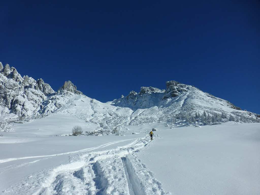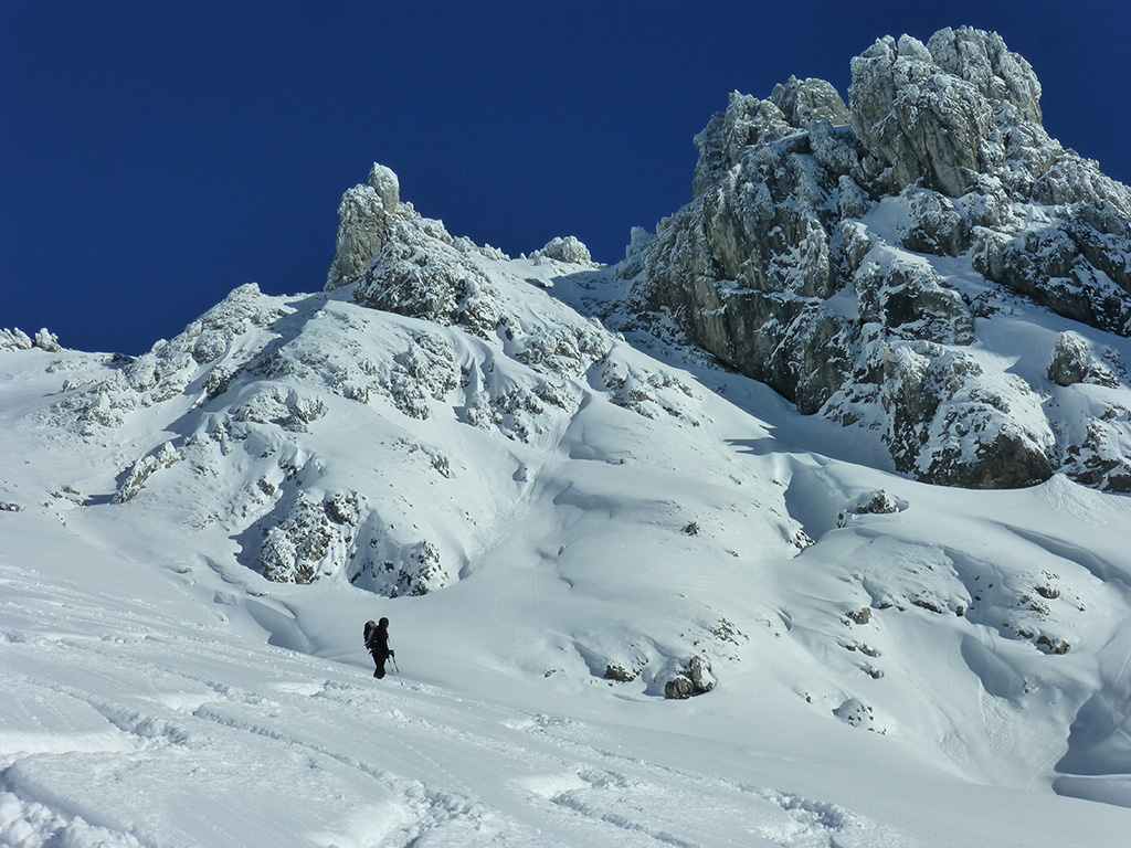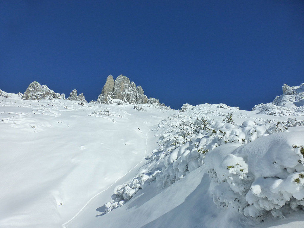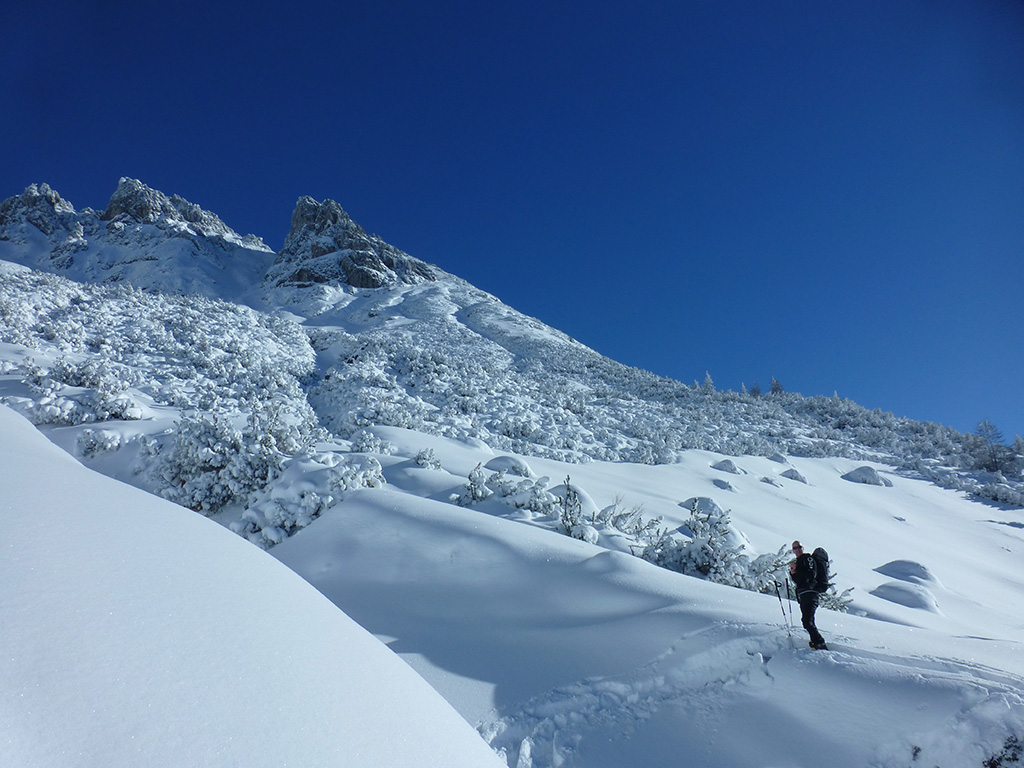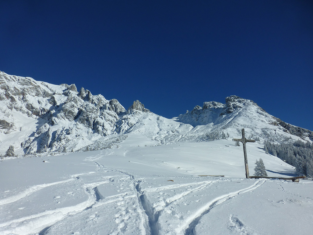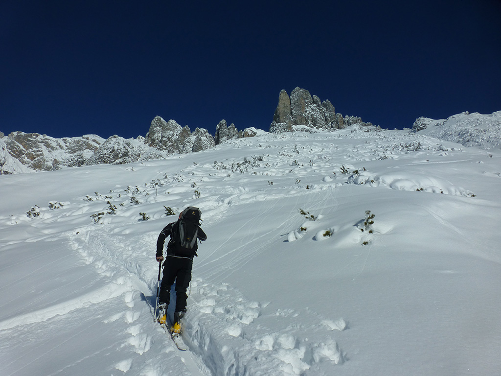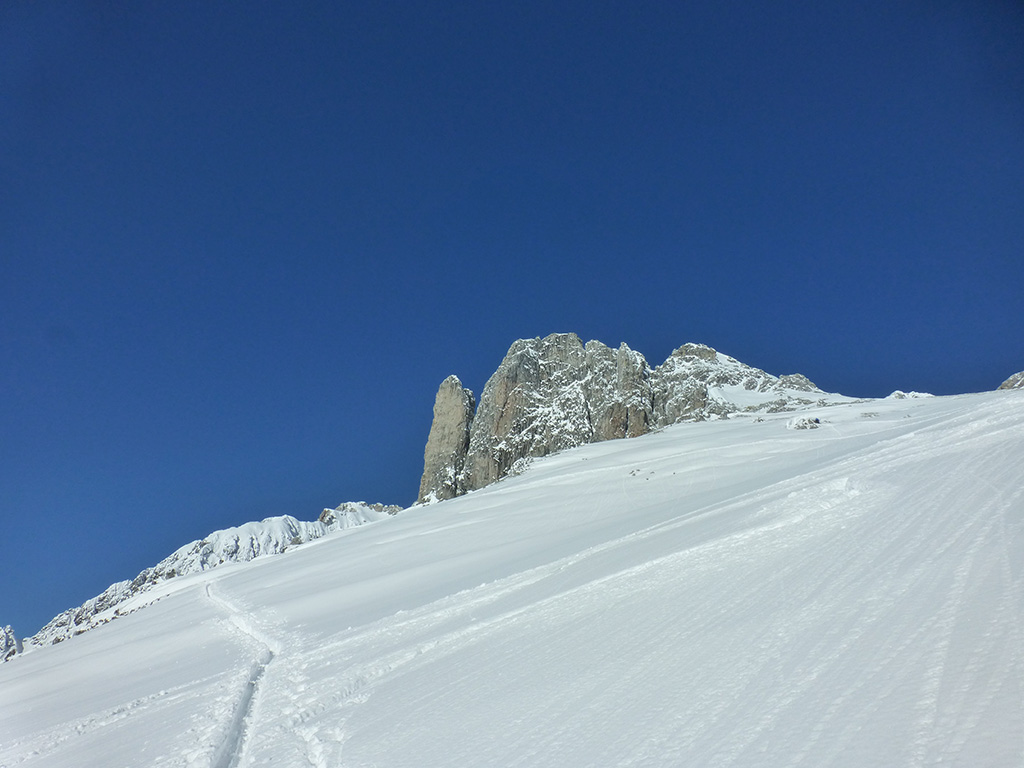 Was sagt man den dazu: Chris ist voll motiviert für eine Schitour, und hat sich dafür auch einen perfekten Tag ausgesucht! Strahlender Sonnenschein, winterliche Temperaturen, Neuschnee, alles was man für einen super Tour im Schnee braucht. Wir fahren am Vormittag über Mühlbach am Hochkönig hinauf auf den Dientener Sattel und wollen über die Erichhütte auf die Taghaubenscharte gehen. Klar, dass wir am späten Vormittag nicht mehr die ersten Tourengeher sind, die auf diese Idee gekommen sind. Aber es stört auch nicht besonders, dass wir uns den Aufstieg aufgrund einer ausgezeichnet angelegten Aufstiegsspur erleichtern. Chris macht auch ohne Snowboard dafür mit Schi unter den Füßen einen gute Figur und wir genießen die fast unwirkliche Winterlandschaft. Zwischen Grandlspitz und Taghaube gelangen wir in stetig weiter nach oben bis schließlich die Rinne hinunter zum Birgkar darauf hindeutet, dass wir die Taghaubenscharte, und somit das heutige Ziel unserer Schitour erreicht haben. Nach einer kurzen Pause, einer Kleinigkeit zu essen und trinken, dem Bewundern der umliegenden Gipfel wie Grandlspitz, Hochkönig und Taghaube machen wir uns an die vielversprechende Abfahrt im Pulverschnee. Nur wenige Spuren ziehen sich bereits durch den frischen Neuschnee, wodurch genung Platz für die eigene Abfahrtsspur bleibt. Spaß pur, super Bedingungen, und wir genießen unsere Schwünge im kalten Schnee. Viel zu schnell sind wir dann leider wieder bei der Erichhütte angekommen und werfen einen letzten Blick zurück. Was für eine super Tour, endlich ist der Winter auch bei uns angekommen. So kann es gerne weitergehen und ich hoffe, Chris is bald wieder mit mir am Start.