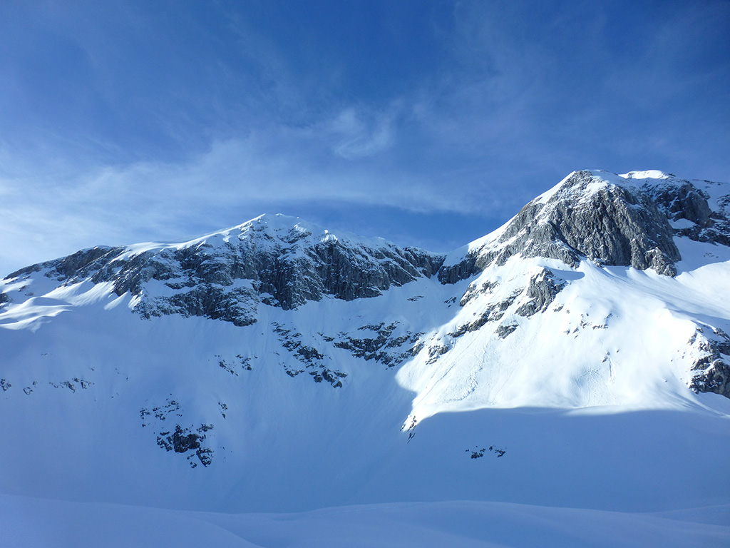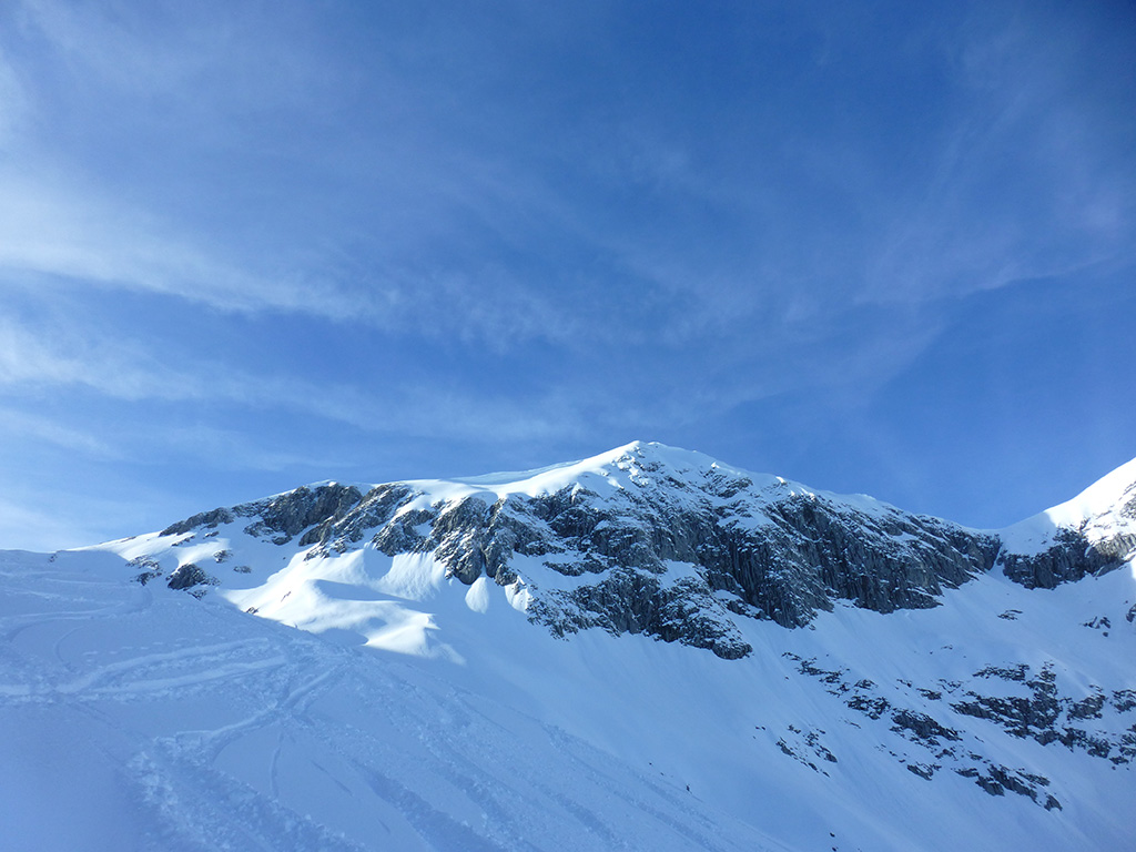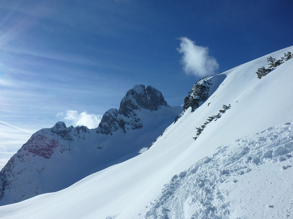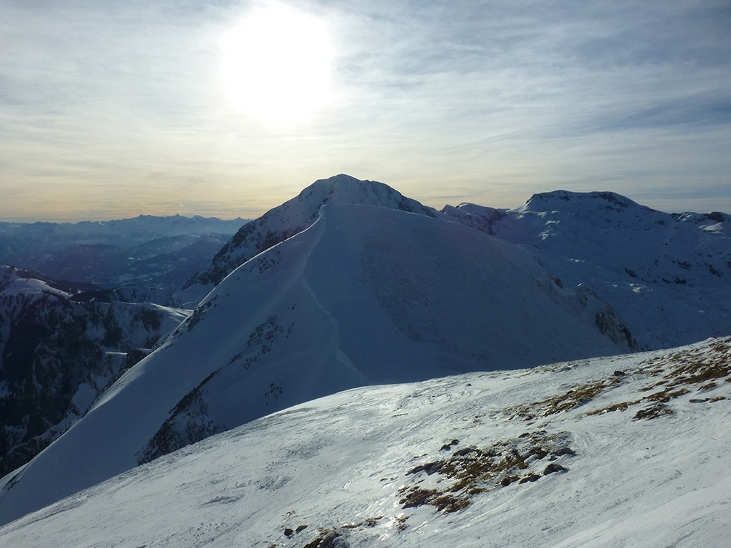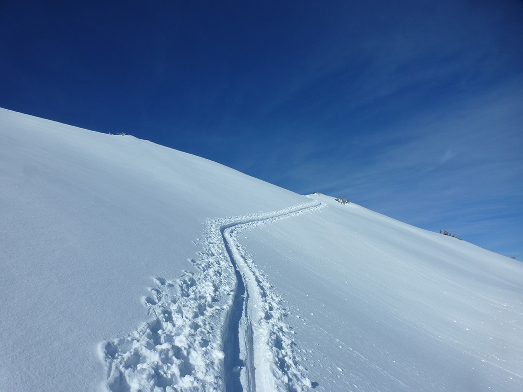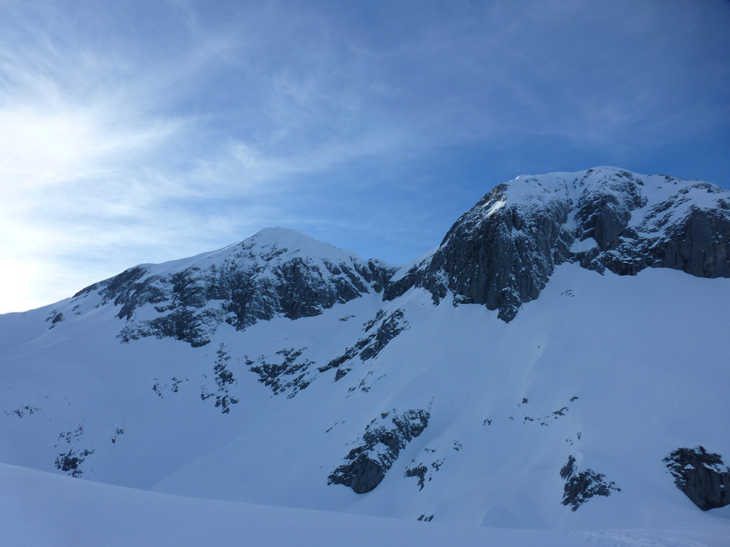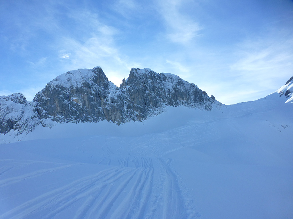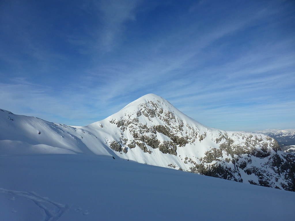 Es ist schon recht spät, als ich mich endlich aus der Arbeit veraschieden kann. Aber nachdem es draußen mittlerweile lange genung hell ist, geht sich schon noch eine kleine Schitour im Tennengebirge aus. Vor fast genau einem Jahr wollte ich vom Lammertal aus auf den Hochkarfelderkopf gehen, was jedoch durch Schneefall und null Sicht keinen Erfolg hatte. Ich brach die Tour etwas oberhalb der Jagdhütte ab. Heute will ich es nochmals versuchen, dieses Mal aber bei herrlichem Sonnenschein, super Schnee und mit gut angeleger Aufstiegsspur. Der gut konservierte Pulverschnee versprach großes Vergnügen bei der Abfahrt, ebenso wie noch wenig verspurte Hänge und Flanken. Nach knapp zwei Stunden Aufstieg stehe ich vor dem Gipfelkreuz des Hochkarfelderkopfs. Die Aussicht ist phänomenal, die Stimmung einmalig, und ich genieße die Ruhe nach einer anstrengenden Arbeitswoche. Die Abfahrt ist traumhaft, und auf der Scharte vor der Riffl überlege ich mir kurz in südwestlicher Richtung zum sogenannten „Scharfen Steig“ abzufahren. Heute nicht, diese Variante werde ich mir ein anderes Mal, und vor allem nicht erst am späten Nachmittag ansehen. Anstelle der Aufstiegsroute via Jagdhütte fahre ich über den Paßruckgraben ab, zumindestens soweit möglich. Die letzten Höhenmeter bis zur Forststrasse lege ich mangels Schnee zu Fuß zurück, dann gehts wieder auf Schi hinunter zum Parkplatz. Eine super Tour die unbedingt wiederholt werden muss!