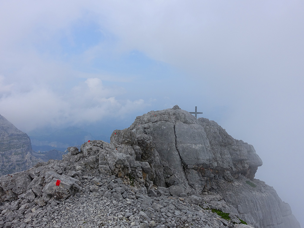 Was für ein bescheidenes Wetter dieses Wochenende! Ständig Regen und Wolken, dazwischen ab und zu ein paar Sonnenstrahlen. Für eine lange Tagestour nicht wirklich einladend, aber zwischendurch schnell wo rauf und runter könnte sich ausgehen. Zu Mittag fahre ich nach Lofer und zum Parkplatz der Schmid-Zabierow-Hütte im Loferer Hochtal. Das Wetter sieht gut aus, etwas bewölkt, aber trocken. Am Zustieg zur Hütte kommt mir der Gedanke, dass ich noch nie auf einem der Reifhörner gestanden bin. Zum Kreuzreifhorn führt laut Karte ein markierter Steig, sodass ich bei einem Wetterumschwung, Regen und Wolken wieder sicher absteigen kann. Nach der Abzweigung auf Höher der Hütte bin ich in knapp 50 Minuten am Gipfel und studiere ein wenig die Gratüberschreitung zum Großen- und Westlichen Reifhorn. Sicherlich eine lohnende Tour, jedoch nicht für heute, und somit mache ich mich an einen schnellen Abstieg. Die Bewölkung nimmt wieder zu, aber es bleibt bis zum Parkplatz trocken, und ich bin froh, die wenigen Stunden bis zum nächsten Regenschauer genutzt zu haben.