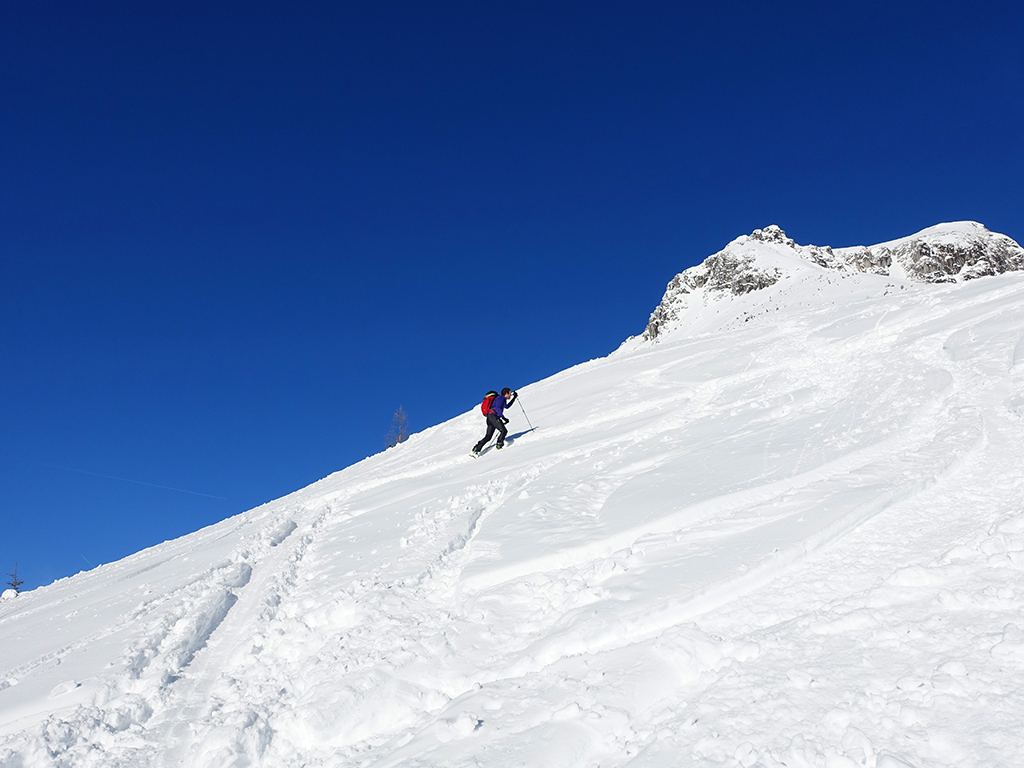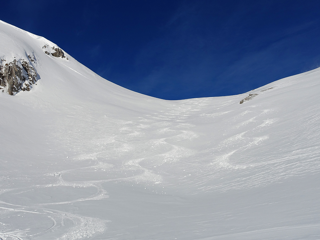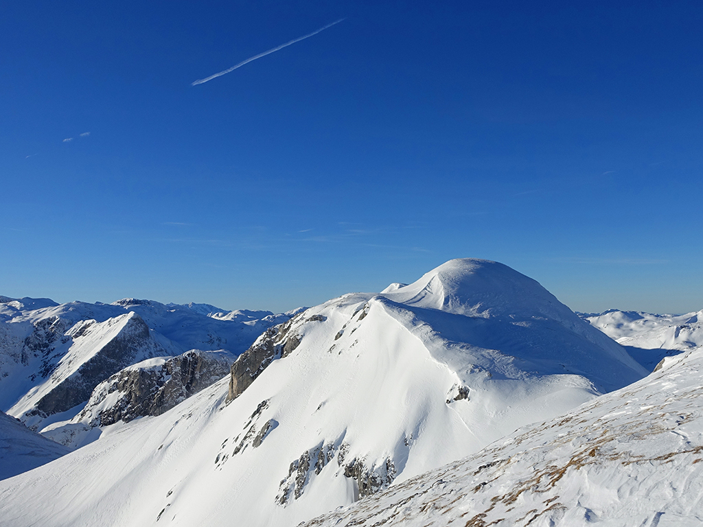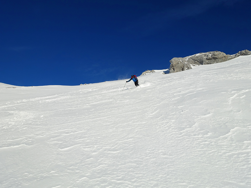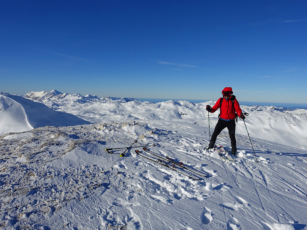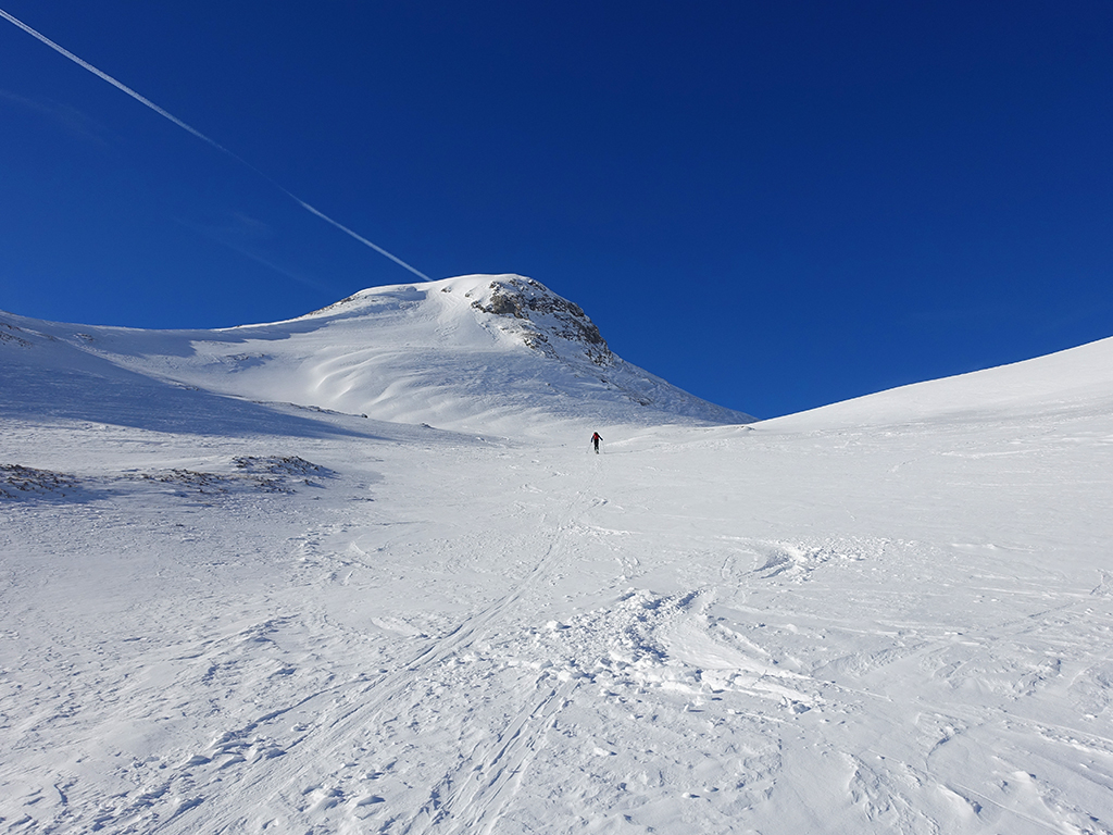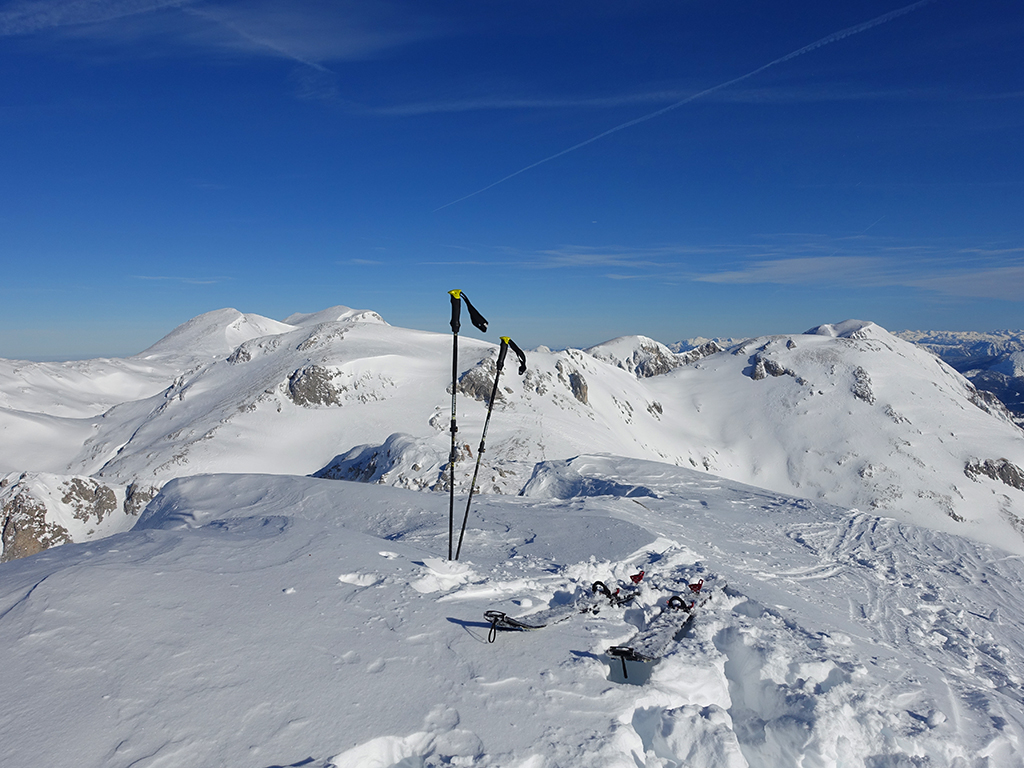 Ja ist denn heute schon Weihnachten? Definitiv, doch eine Schitour bei strahlendem Sonnenschein geht sich für Hias und mich allemal aus. Über die Hackel-Hütte folgen wir einer breiten Spur hinauf zur Tauernscharte. Hias fühlt sich heute nicht hundertprozentig fit, weshalb er ein längere Pause unterhalb der Scharte einlegt, und ich in der Zwischenzeit zum Eiskogel weitergehe. Nach einer kurzen Pause am Gipfel fahre ich entlang der Aufstiegsspur zurück, wo mir dann auch Hias entgegenkommt. Also nochmal hinauf zum Gipfel, Pause machen und die Aussicht genießen. Hias gehts nun eindeutig besser, und weil bis zum Sonnenuntergang genug Zewit bleibt, entschließen wir uns für eine kleine Rundtour mit Schartwand und Brietkogel. Die Abfahrten von der Scharte zwischen Schartwand und Brietkogel, bzw. vom Brietkogel selbst sind wahre Weihnachtsgeschenke, und wir genießen jeden Meter im lockeren Pulverschnee.