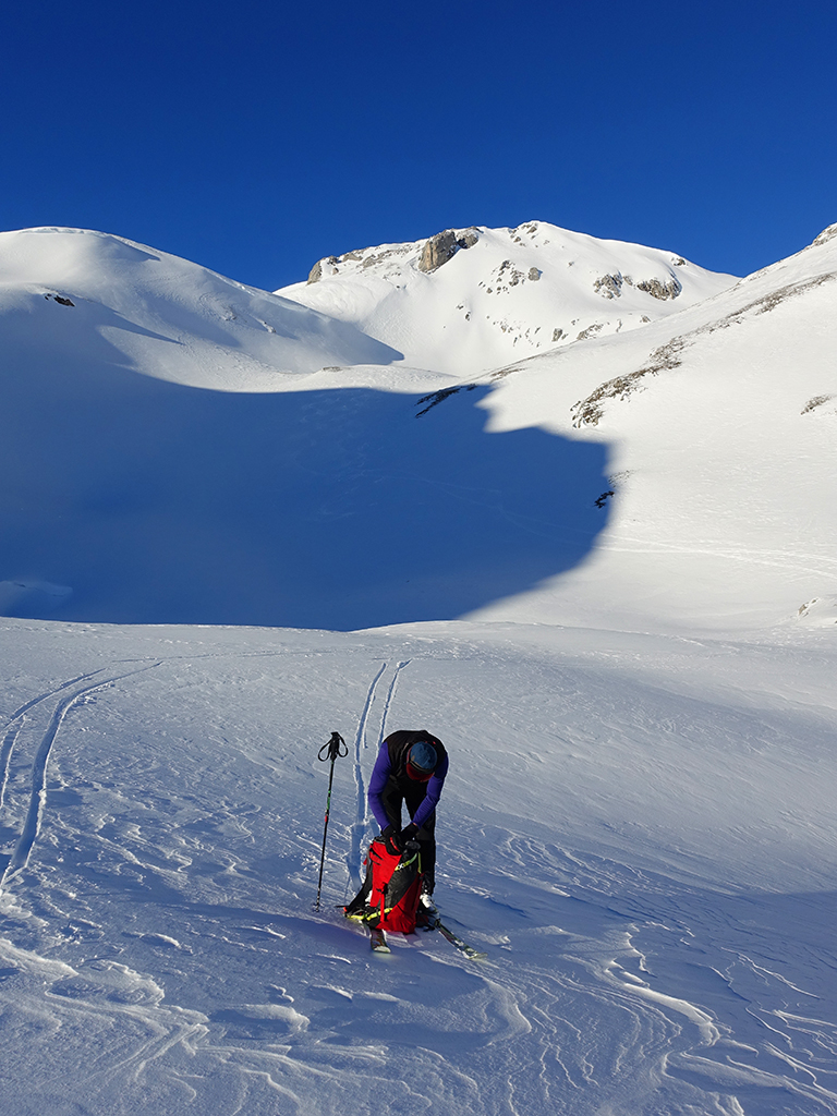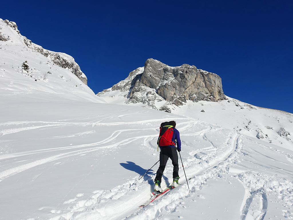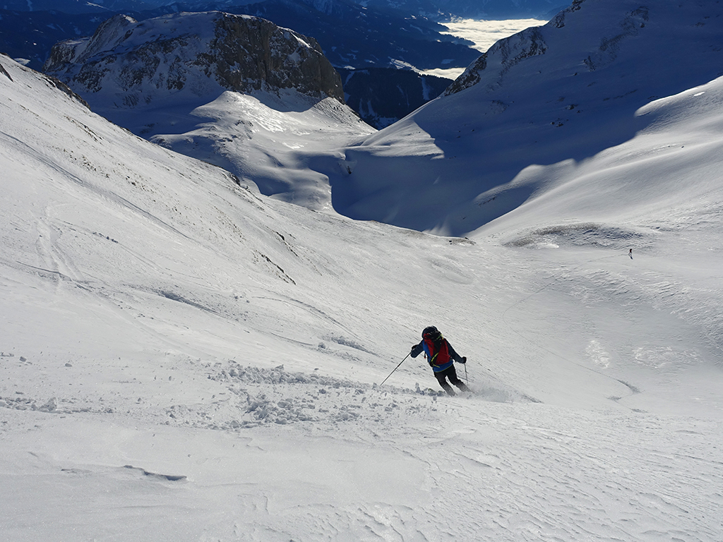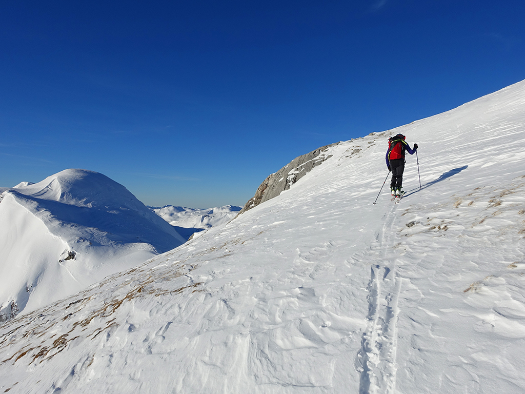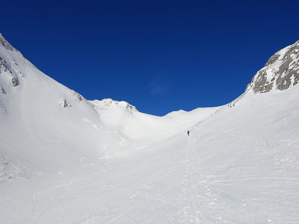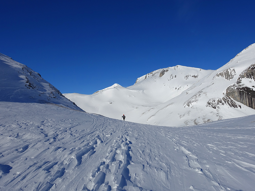 Ja ist denn heute schon Weihnachten? Definitiv, doch eine Schitour bei strahlendem Sonnenschein geht sich für Hias und mich allemal aus. Über die Hackel-Hütte folgen wir einer breiten Spur hinauf zur Tauernscharte. Hias fühlt sich heute nicht hundertprozentig fit, weshalb er ein längere Pause unterhalb der Scharte einlegt, und ich in der Zwischenzeit zum Eiskogel weitergehe. Nach einer kurzen Pause am Gipfel fahre ich entlang der Aufstiegsspur zurück, wo mir dann auch Hias entgegenkommt. Also nochmal hinauf zum Gipfel, Pause machen und die Aussicht genießen. Hias gehts nun eindeutig besser, und weil bis zum Sonnenuntergang genug Zewit bleibt, entschließen wir uns für eine kleine Rundtour mit Schartwand und Brietkogel. Die Abfahrten von der Scharte zwischen Schartwand und Brietkogel, bzw. vom Brietkogel selbst sind wahre Weihnachtsgeschenke, und wir genießen jeden Meter im lockeren Pulverschnee.